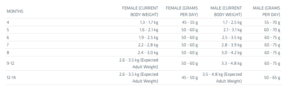 κοτόπουλο (17%), πρωτεΐνη καλαμποκιού, ρύζι (14%), πλήρες καλαμπόκι, αφυδατωμένη πρωτεΐνη χοιρινού κρέατος, αφυδατωμένη πρωτεΐνη πουλερικών, πρωτεΐνη σιταριού, υδρολυμένες ζωικές πρωτεΐνες (πουλερικά, χοιρινό, ψάρι), λίρδα, κονιοποιημένη κυτταρίνη, πολτός τεύτλων (1,5%), μέταλλα, ίνες μπιζελιού, ιχθυέλαιο, μαγιά, ινουλίνη κιχωρίου (0,4%), πρωτεΐνη πλάσματος χοιρινού κρέατος (φυσική πηγή ανοσοσφαιρινών) (0,4%), συμπύκνωμα μαγιάς (φυσική πηγή νουκλεοτιδίων).