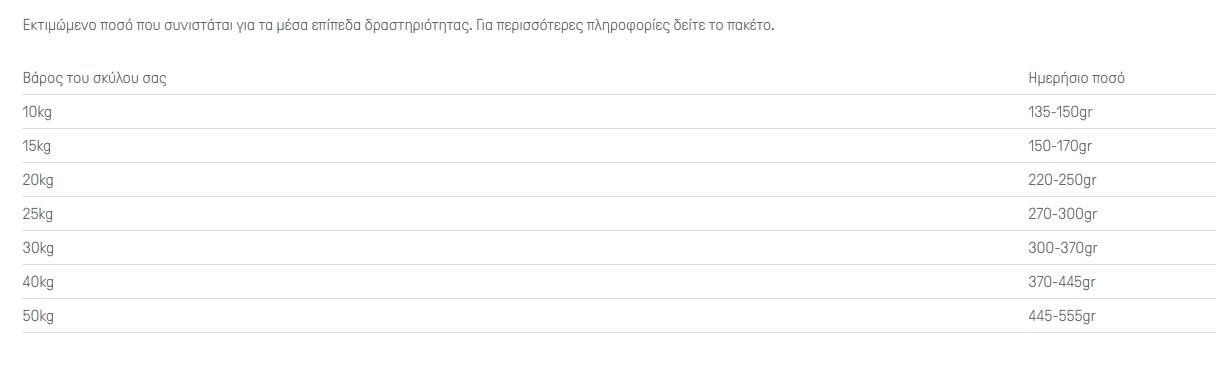 Κοτόπουλο (16%), σιτάρι, αφυδατωμένες πρωτεΐνες πουλερικών, αραβόσιτος, ρύζι (10%), πρωτεΐνη αραβοσίτου, υδρολυμένες ζωικές πρωτεΐνες, τεύτλο, ιχθυέλαιο, φυσική πηγή ανοσοσφαιρινών (0,4%), Αλάτι, γλυκοζαμίνη (445 mg / kg), θειική χονδροϊτίνη (350 mg / kg), φυσικές πολυφαινόλες (0,01%).