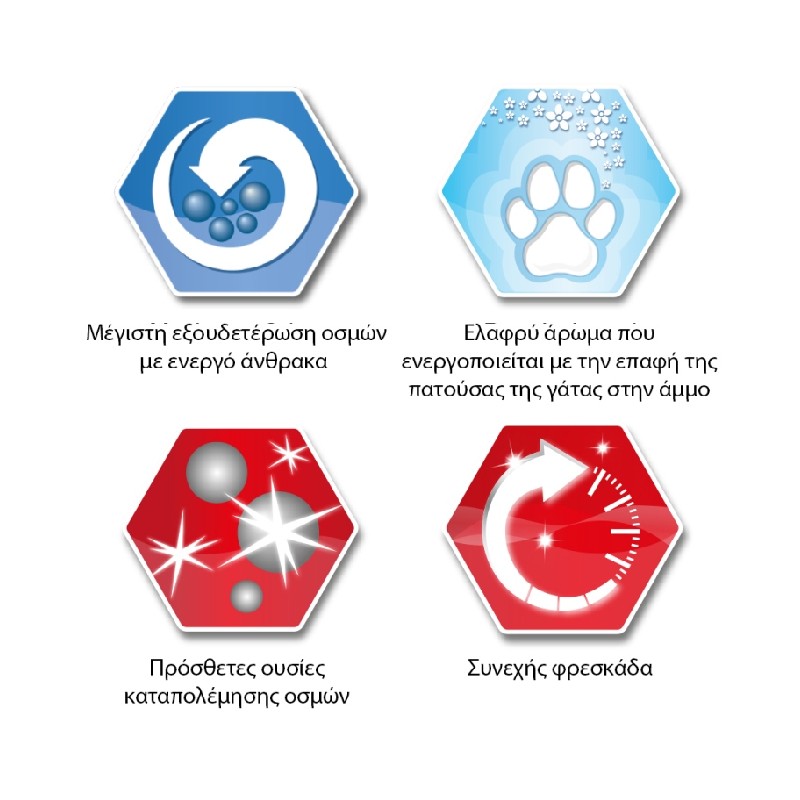 ΑΥΤΟΣΥΓΚΟΛΛΟΥΜΕΝΗ ΑΜΜΟΣ ΥΓΙΕΙΝΗΣ EVER CLEAN MULTIPLE CAT ME EXTRA ΕΞΟΥΔΕΤΕΡΟΠΟΙΗΤΕΣ ΟΣΜΩΝ: Ενισχυμένη αυτοσυγκολλούμενη άμμος γάτας ειδικά κατασκευασμένη με πρόσθετες ουσίες καταπολέμησης οσμών για σπίτια με περισσότερες από μία γάτες και συχνή χρήση της λεκάνης υγιεινής.ΠΑΤΕΝΤΑΡΙΣΜΕΝΗ ΤΕΧΝΟΛΟΓΙΑ ΕΝΕΡΓΟΥ ΑΝΘΡΑΚΑ: Εξαλείφει τις οσμές ούρων, κοπράνων και αμμωνίας παγιδεύοντας και συγκρατώντας τες αντί να τις καλύπτει.ΑΡΩΜΑ ΦΡΕΣΚΑΔΑΣ: Εξασφαλίζει συνεχές ευχάριστο άρωμα τόσο στην λεκάνη υγιεινής, όσο και στο σπίτι.ΑΡΩΜΑ ΠΟΥ ΕΝΕΡΓΟΠΟΙΕΙΤΑΙ ΜΕ ΤΑ ΠΟΔΙΑ ΤΗΣ ΓΑΤΑΣ: Το άρωμα απελευθερώνεται μόνο όταν η λεκάνη υγιεινής χρησιμοποιείται.ΜΕΓΑΛΗ ΔΙΑΡΚΕΙΑ: Μία συσκευασία 10lt διαρκεί έως και δύο μήνες*, που σημαίνει λιγότερες αλλαγές στη λεκάνη υγιεινής και εξοικονόμηση χρημάτων.*Βασισμένο σε εργαστηριακά αποτελέσματα (Μέσος ημερήσιος όγκος ούρων για μία μεσαίου μεγέθους οικόσιτη γάτα)