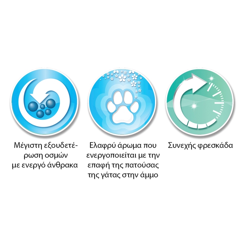 Αυτοσυγκολλούμενη άμμος για τη γατούλα σας, με φρέσκο άρωμα λουλουδιών εμπνευσμένο από τη φύση! Ειδικά κατασκευασμένη για να εμποδίζει τα υγρά να φτάσουν στον πάτο της λεκάνης, όπου μπορούν να δημιουργηθούν δυσάρεστες οσμές. Με πατενταρισμένη τεχνολογία ενεργού άνθρακα που εξαλείφει τις οσμές ούρων, κοπράνων και αμμωνίας παγιδεύοντας και συγκρατώντας τες αντί να τις καλύπτει. Το άρωμα ενεργοποιείται με τις πατούσες της μικρής μας φίλης, μόνο όταν η λεκάνη χρησιμοποιείται. Η εξαιρετικά ισχυρή συγκολλητική της δύναμη δημιουργεί σβώλους που δεν θρυμματίζονται ενώ παράλληλα δεσμεύουν τις δυσάρεστες οσμές. Η βελτιωμένη σύνθεσή της και τα νέα μίγματα άμμου επιτρέπουν το μέγιστο έλεγχο των οσμών ενώ ταυτόχρονα η ειδική της φόρμουλα αποτρέπει το σχηματισμό σκόνης. Έτσι η μικρή μας φίλη απολαμβάνει την άμμο της χωρίς δυσάρεστες ενοχλήσεις!