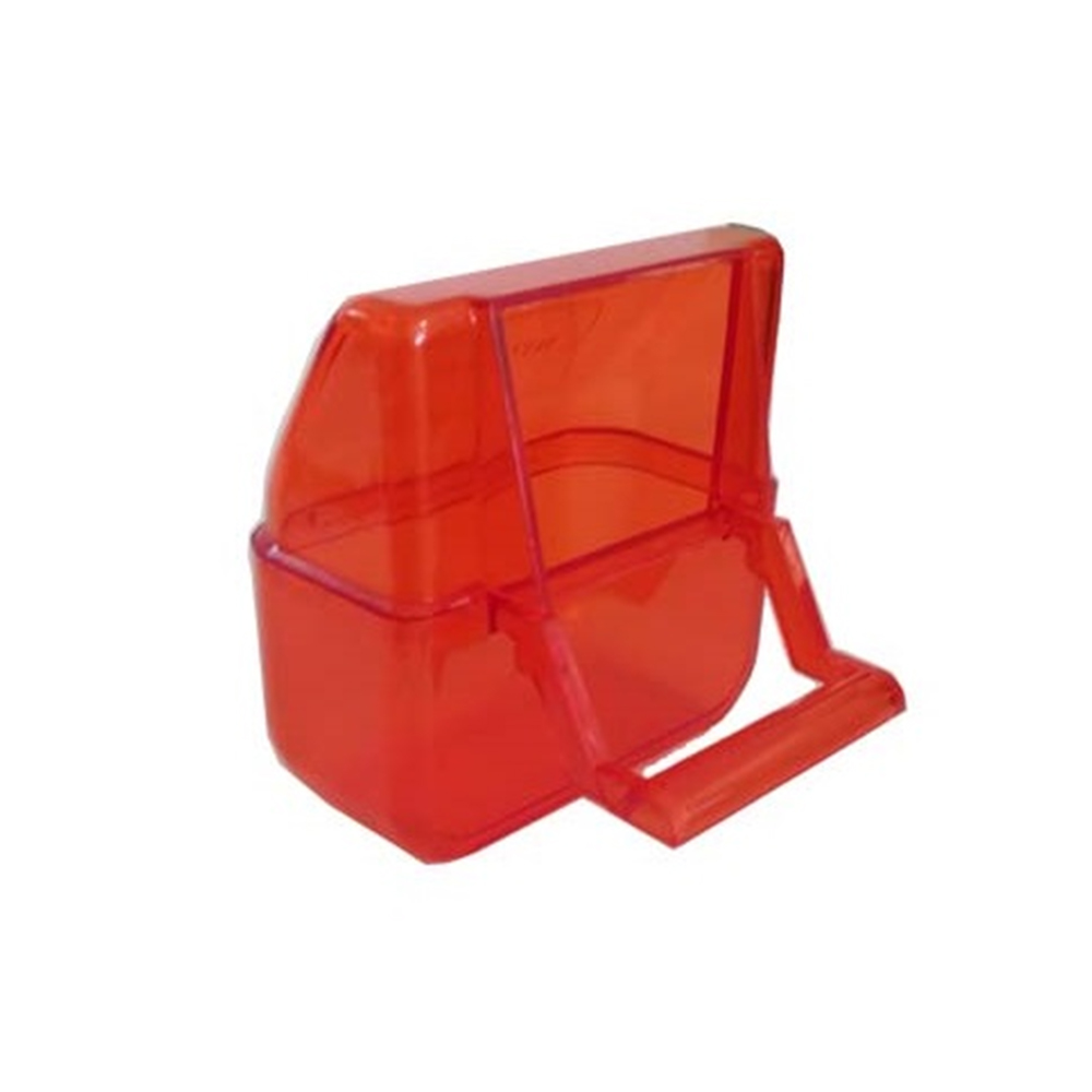 Απλή εξωτερική πλαστική ταΐστρα για κλουβιά πουλιών.