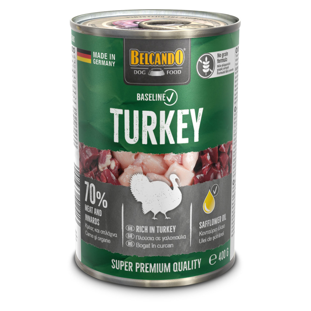 Πλήρης υγρή τροφή, χωρίς σιτηρά, με γαλοπούλα σε πατέ, για το ανήλικο ή το ενήλικο σκυλάκι σας ανεξαρτήτως φυλής. Η τροφή περιέχει επίσης κενταύριο έλαιο (κάρθαμο) με φυσική βιταμίνη Ε για υγιές δέρμα και τρίχωμα. Όλα τα συστατικά μαγειρεύονται απαλά στον ατμό, διασφαλίζοντας ότι τα θρεπτικά συστατικά και η ακαταμάχητη γεύση του κρέατος διατηρούνται στον καλύτερο δυνατό βαθμό.