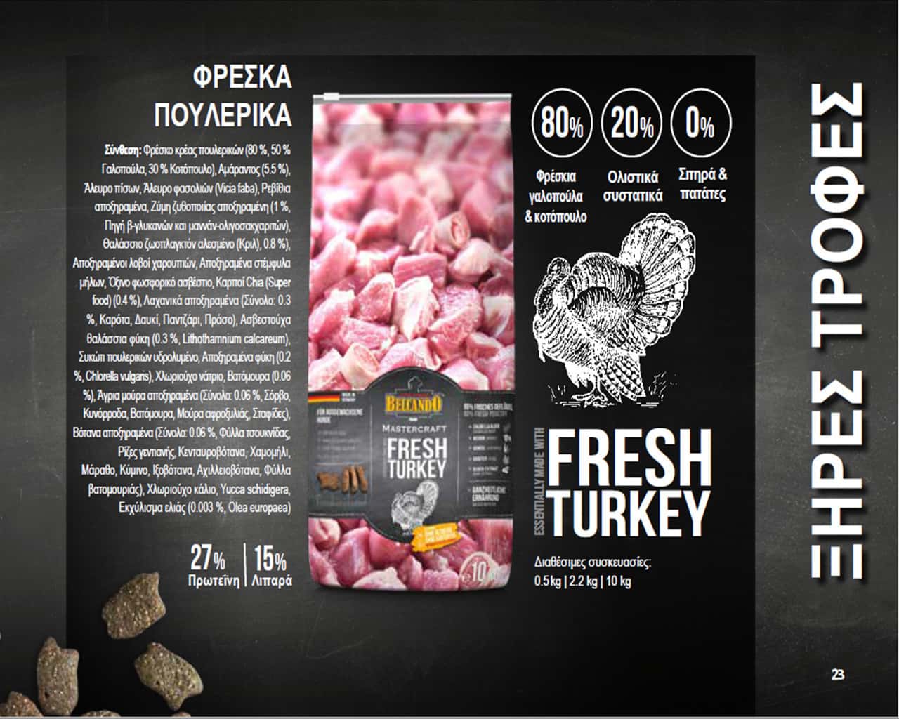 - Η γαλοπούλα είναι ένα στεγνό λευκό κρέας που βοηθάει το μικρό μας φίλο να χτίσει έναν υγιή μυϊκό ιστό. Επιπλέον είναι μία ιδιαίτερα εύπεπτη πηγή ζωικής πρωτεΐνης η οποία μπορεί να χρησιμοποιηθεί σε σκυλάκια με τροφική ευαισθησία και αλλεργίες