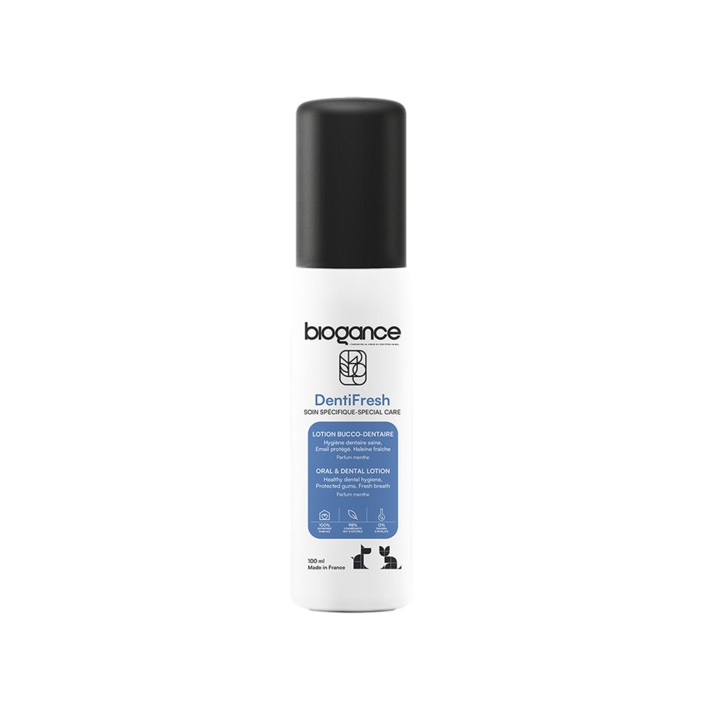 Το Biogance Dog Oral Dental Lotion είναι σπρέι οδοντικής φροντίδας για σκύλους που βοηθά να διατηρούνται τα δόντια και τα ούλα καθαρά και υγιή, ενισχύοντας την υγιεινή του στόματος και προσφέροντας φρέσκια αναπνοή χάρη σε ήπια σύνθεση με φυσικά εκχυλίσματα και ένζυμα.