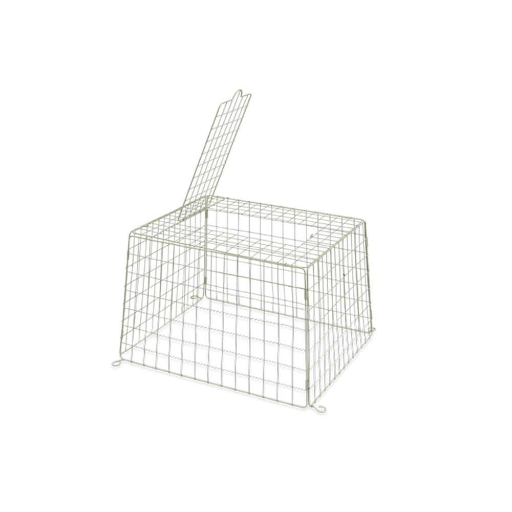 Μεταλλικός κλωβός προστασίας για τροφοδοσία εδάφους, σχεδιασμένος να φιλοξενεί τροφή για άγρια πτηνά ενώ αποτρέπει την πρόσβαση μεγαλύτερων πουλιών και ανεπιθύμητων ζώων, παρέχοντας ασφαλές περιβάλλον σίτισης σε κήπους και υπαίθριους χώρους.