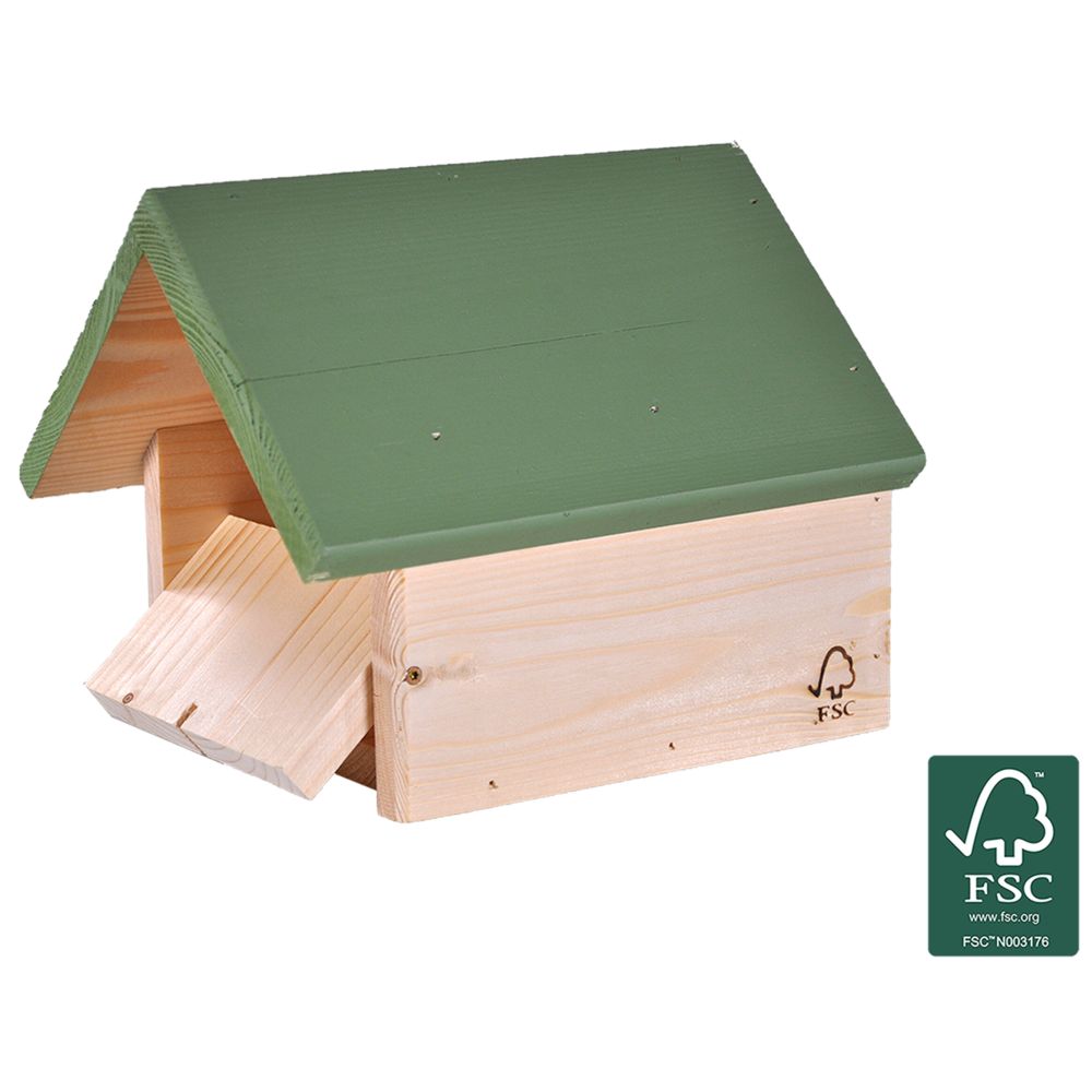 Ξύλινο σπιτάκι για σκαντζόχοιρους, κατασκευασμένο από FSC πιστοποιημένο ξύλο με ανθεκτικό σχεδιασμό για υπαίθρια χρήση, παρέχοντας ασφαλές καταφύγιο και προστασία από τις καιρικές συνθήκες.