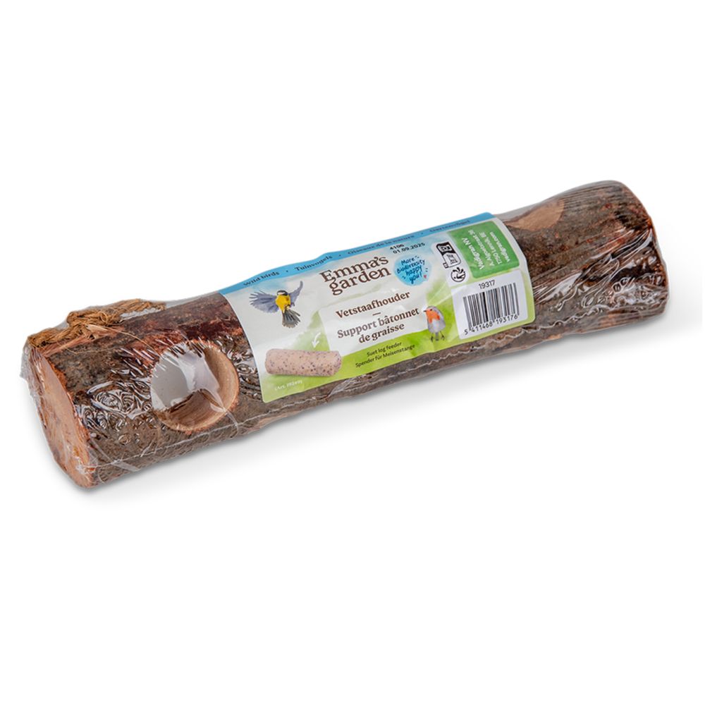 Τροφοδότης για μπλοκ λίπους (suet log), σχεδιασμένος για άγρια πτηνά με στιβαρή κατασκευή που προσφέρει σταθερή υποδοχή και εύκολη πρόσβαση στη τροφή, κατάλληλος για κήπους, μπαλκόνια και εξωτερικούς χώρους.