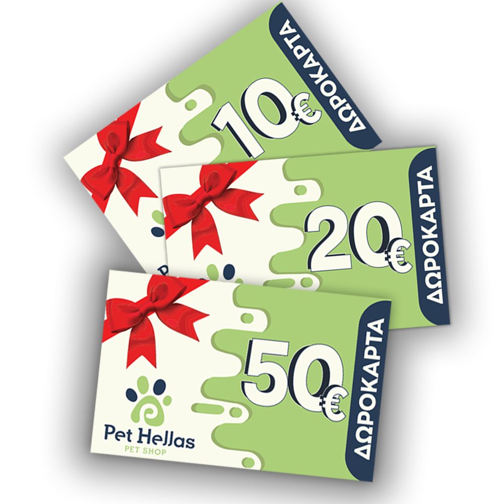 Με τη δωροκάρτα του Pet Hellas, προσφέρεις περισσότερα από ένα απλό δώρο — χαρίζεις την εμπειρία της επιλογής! Ιδανικό δώρο για γονείς κατοικιδίων, αυτή η κάρτα μπορεί να εξαργυρωθεί εύκολα online ή στο κατάστημα . Στέλνεται ηλεκτρονικά ή σε έντυπη μορφή με όμορφη συσκευασία.