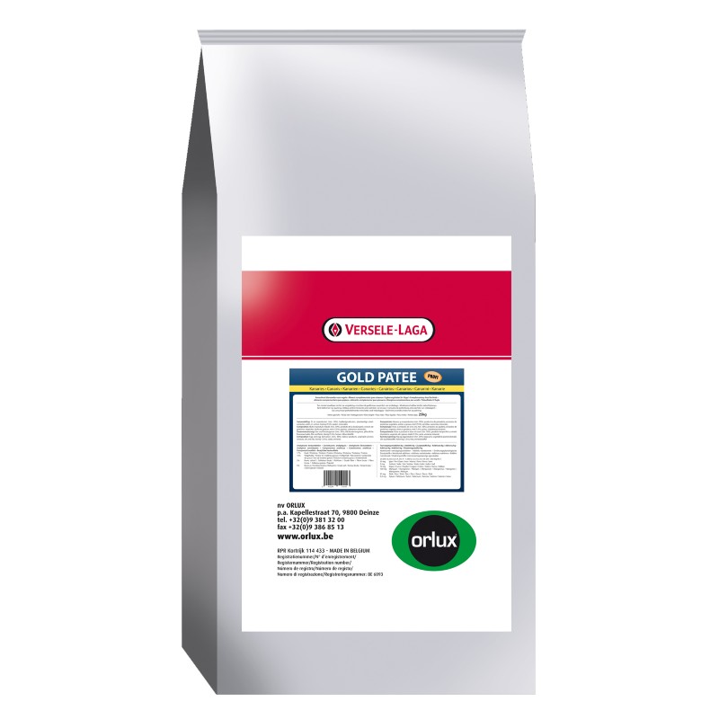 Η Orlux Gold patee canaries είναι αυγοτροφή έτοιμη προς χρήση για καναρίνια, παραδείσια καρδερίνες και άλλα αγριόπουλα. Μπορεί επίσης να χρησιμοποιηθεί και σαν ένας καλός μεζές για τα πτηνό σας. Το Gold Patee Canaries έχει υψηλή διατροφική αξία με 100% αγνό και φυσικό μέλι. H επιπλέον προστιθέμενη λυσίνη και μεθιονίνη αποτελούν εγγύηση για τη βέλτιστη ανάπτυξη και το τέλειο σχηματισμό του πτερώματος.Διατίθεται στις συσκευασίες των 250g, 1kg, 5kg, 25kg.
