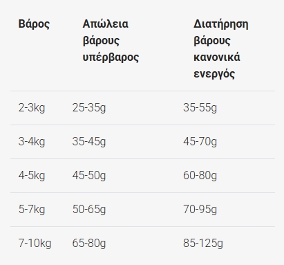 Κάθε γάτα είναι διαφορετική και η ποσότητα παρεχόμενης τροφής είναι πιθανό να αλλάζει με βάση την ηλικία και τον τρόπο ζωής της. Χρησιμοποιήστε την συνιστώμενη δόση σαν οδηγό, παρακολουθείστε το βάρος της και προσαρμόστε ανάλογα τις ποσότητες για τη μικρή μας φίλη. Ταΐστε την δύο φορές την ημέρα, έχοντας πάντα δίπλα της φρέσκο, καθαρό νερό!
