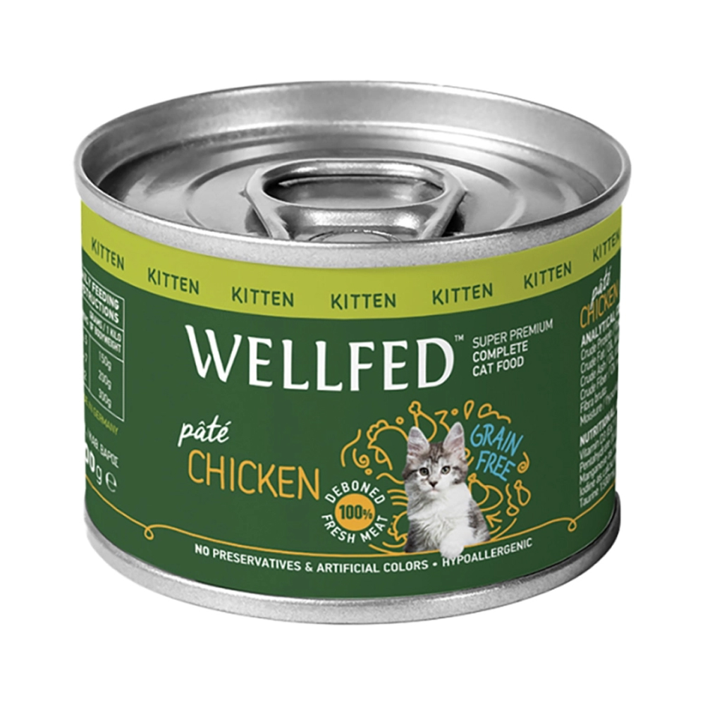 Πλήρης υγρή τροφή με κοτόπουλο σε πατέ για την ανήλικη γατούλα σας, έως 12 μηνών, αλλά και για την εγκυμονούσα ή θηλάζουσα μικρή μας φίλη. Η τροφή αυτή είναι ανώτερης ποιότητας, από 100% φρέσκο κρέας μαγειρεμένο στον ατμό, χωρίς υδατάνθρακες. Είναι εμπλουτισμένη με ασβέστιο και ταυρίνη που ενδυναμώνει την καρδιά, υποστηρίζει την όραση, προωθεί την υγεία του αναπαραγωγικού συστήματος και έχει αντιοξειδωτική δράση που βοηθά στην προστασία κατά της γήρανσης. Δεν περιέχει σιτηρά, συντηρητικά ή τεχνητά χρώματα και έχει χαμηλή περιεκτικότητα σε μαγνήσιο. Είναι μια θρεπτική τροφή κατάλληλη για τις ιδιαίτερες διατροφικές ανάγκες της γατούλας σας σε αυτό το τρυφερό στάδιο της ζωής της!