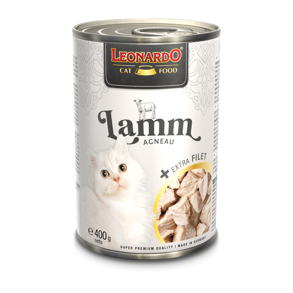 • Υγρή Τροφή, Κονσέρβα Γάτας Leonardo Lamb & Extra Fillet 400gr με Αρνί. Πλήρης τροφή για ενήλικες γάτες από 1 έτους.