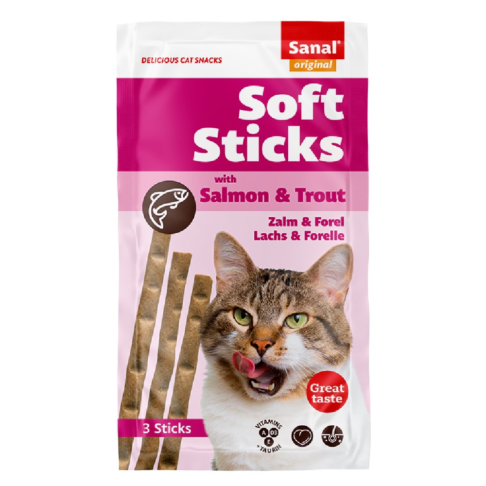 Τα Sanal Soft Sticks είναι νόστιμα σνακ και πολύ μαλακά . Οι προστιθέμενες επιπλέον βιταμίνες A, D3 και Ε διεγείρουν την όρεξη και τη ζωτικότητα της γάτας σας . Τα Soft Sticks είναι ιδανικά σνακ για ανταμοιβή που η γάτα σας δεν μπορεί να αντισταθεί.