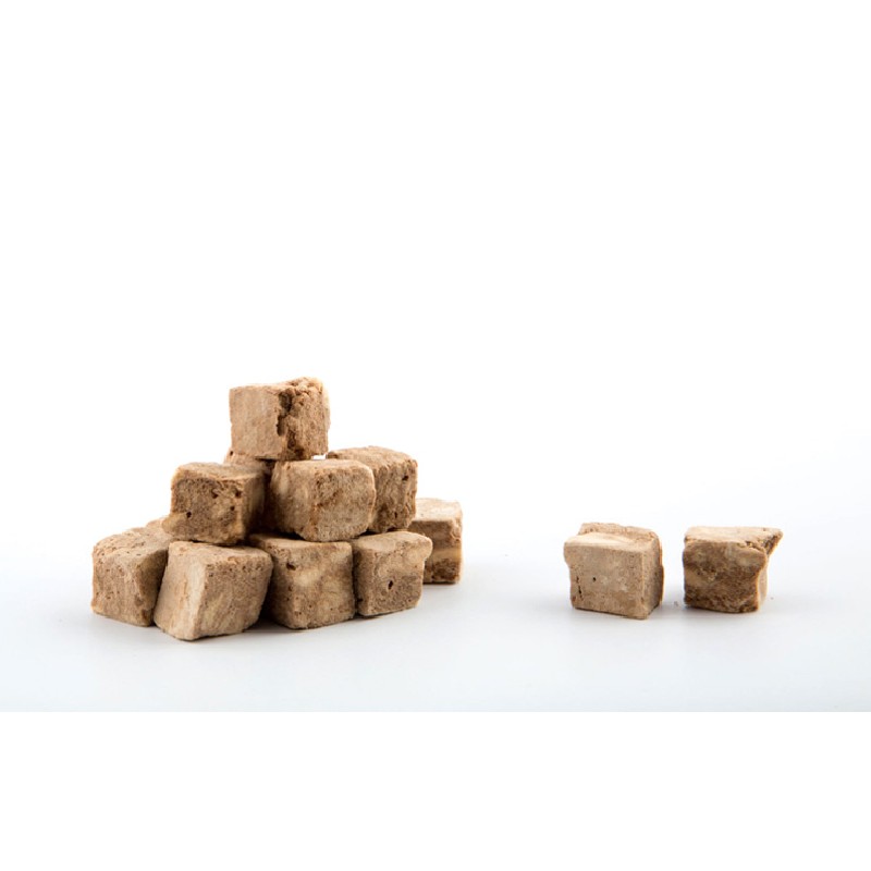 Freeze dried με κοτόπουλο.Υψηλής ποιότητας λιχουδιά αφυδατωμένη με την μέθοδο Freeze Dry, για την καλύτερη διατήρηση όλων των θρεπτικών συστατικών και την γεύση του ωμού κρέατος.Παρασκευάζονται εξ ολοκλήρου από 100% φρέσκο ​​ωμό κρέας. Η φιλική προς το περιβάλλον τεχνολογία Freeze Dried που χρησιμοποιήθηκε έχει αναπτυχθεί για να διατηρεί την τροφή σε υψηλή ποιότητα περικλείοντας όλα τα θρεπτικά συστατικά και όλα τα αρώματα και τις γεύσεις του ωμού κρέατος, για περισσότερη ευχαρίστηση και απόλαυση.Διαδικασία Freeze Dried: Το φαγητό παγώνει και η πίεση του περιβάλλοντος μειώνεται απότομα, το νερό στα τρόφιμα εξαφανίζεται, μετατρέπεται σε αέριο και παραμένουν μόνο τα θρεπτικά στοιχεία του κρέατος.