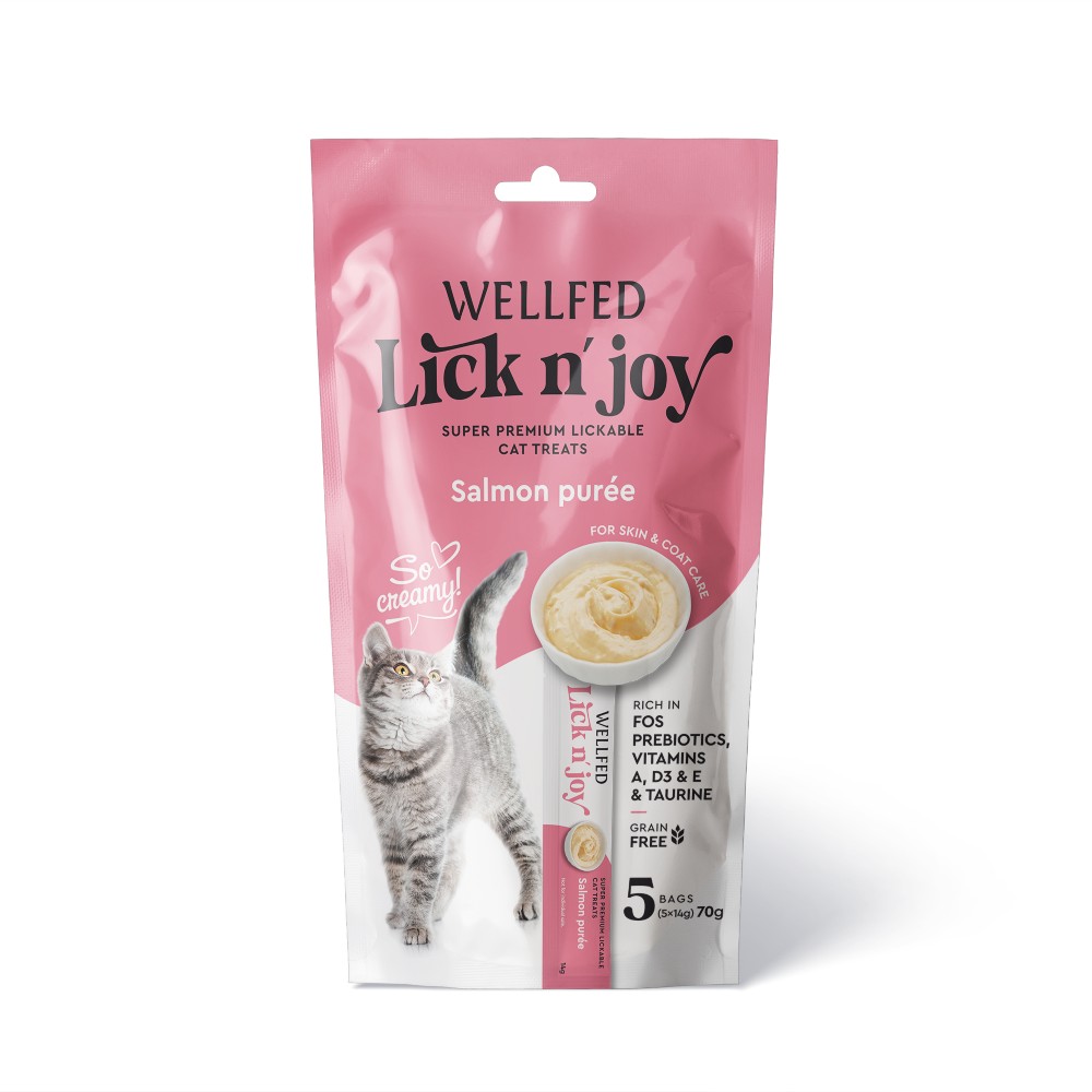 Κρεμώδης λιχουδιά με σολομό, για τη γατούλα σας. Είναι φτιαγμένη από φυσικά συστατικά, χωρίς σιτηρά, συντηρητικά ή τεχνητά χρώματα. Έχει υψηλή περιεκτικότητα σε υγρασία που τη χρειάζονται οι γατούλες, και χαμηλή περιεκτικότητα σε λιπαρά. Περιέχει επίσης ταυρίνη, πρεβιοτικά και βιταμίνες. Μπορείτε να την προσφέρετε στη μικρή μας φίλη με ποικίλους τρόπους: σκέτη ως λιχουδιά ή ως συμπλήρωμα στην καθημερινή της διατροφή, να την προσθέσετε στην ξηρή τροφή της για μια πιο γευστική απόλαυση ή να την ανακατέψετε με τις λιχουδιές της. Επίσης μπορείτε να την ανακατέψετε με κάποιο χάπι σε περίπτωση που η γατούλα σας δυσκολεύεται να το καταπιεί. Είναι πολύ εύκολη στη χρήση αφού απλώς σκίζετε το φακελάκι και το πιέζετε ώστε να βγει η κρέμα. Η συσκευασία περιέχει 5 φακελάκια.