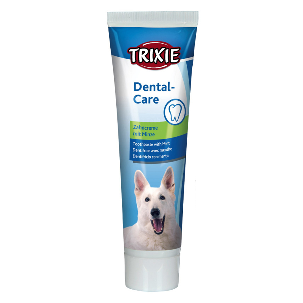 Η οδοντόκρεμα Trixie με μέντα 100gr βοηθά στην πρόληψη του σχηματισμού πλάκας, ενώ παράλληλα χαρίζει δροσερή αναπνοή και βελτιώνει την στοματική υγιεινή του σκύλου σας. Για να εξοικειωθεί ο τετράποδος φίλος σας με τη νέα του… συνήθεια, μπορείτε να τρίψετε μία πολύ μικρή ποσότητα στα δόντια του. Στη συνέχεια, τοποθετήστε μια μικρή ποσότητα στην οδοντόβουρτσά του και τρίψτε προσεκτικά τα δόντια του. Δεν υπάρχει κανένα πρόβλημα αν ο σκύλος σας καταπιεί την οδοντόκρεμα. Συσκευασία: 100 γραμμάρια.
