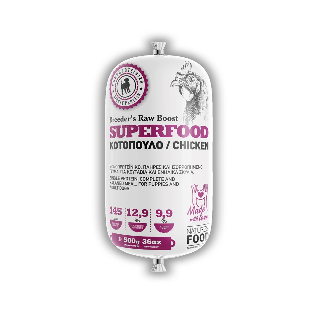 Nature’s Food Superfood Ωμή Τροφή Σκύλου Σαλάμι Κοτόπουλου 500gr