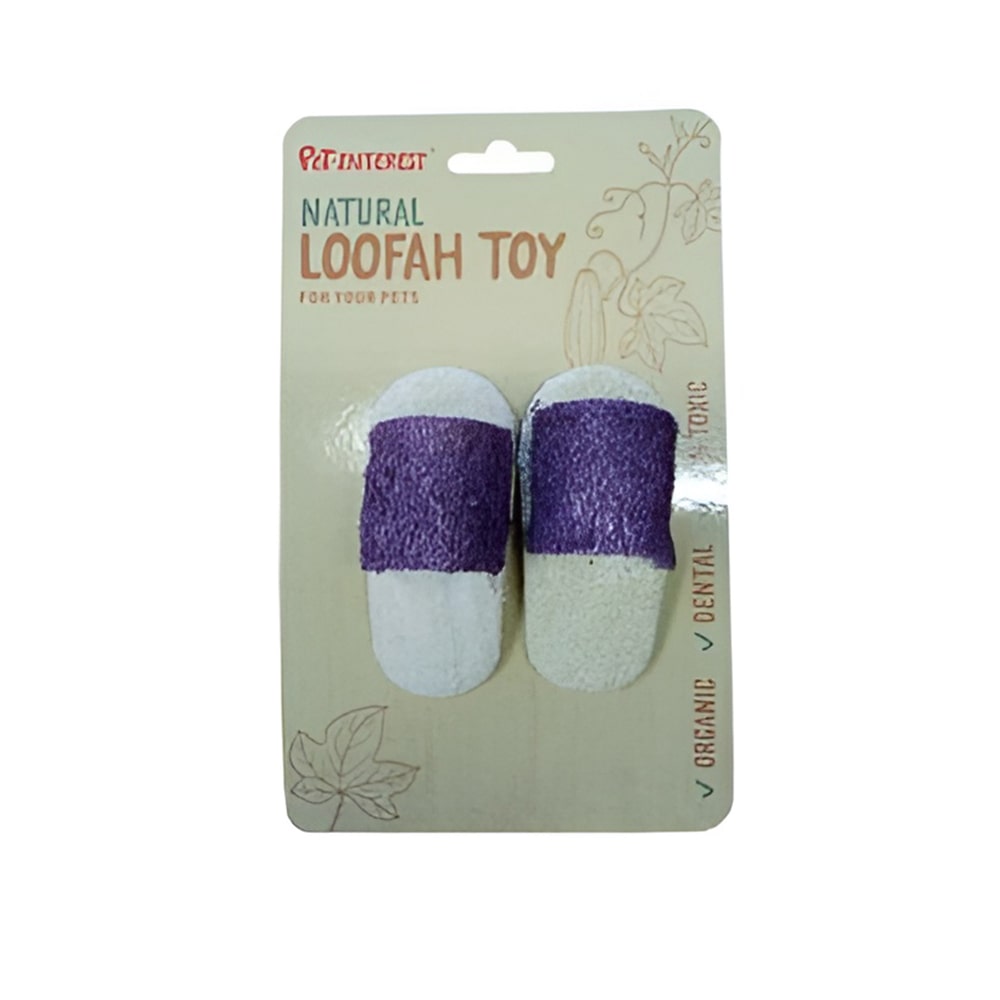 Οδοντικό παιχνίδι από φυτό Loofah, ιδανικό για κουτάβια και μικρόσωμα σκυλιά και τρωκτικά. Σχέδιο παντόφλα. Καθαρίζει τα δόντια και φρεσκάρει την αναπνοή ενώ παράλληλα χαλαρώνει και ηρεμεί. Διάσταση: 4×8.5cm