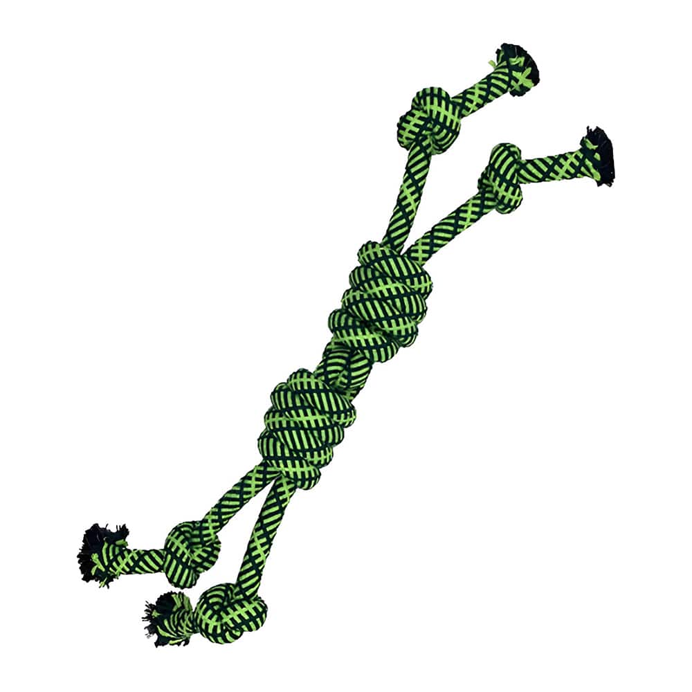 Παιχνίδι σχοινί με 4 κόμπους και γεύση μέντας, το ιδανικό παιχνίδι για να παίξει και ταυτόχρονα να καθαρίσει τα δόντια του! Το παιχνίδι αυτό βοηθάει το σκυλάκι σας να περάσει την ώρα του ευχάριστα και ταυτόχρονα καθώς το μασάει να καθαρίσει και να κρατήσει τα δοντάκια του απασχολημένα. Τα παιχνίδια σχοινιά είναι από τα πιο διασκεδαστικά και διαχρονικά παιχνίδια, μια θαυμάσια ευκαιρία για εκτόνωση, εκπαίδευση και ανέμελη εξάσκηση των αντιδράσεων του μικρού μας φίλου.