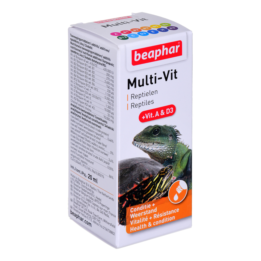 Συμπλήρωμα βιταμινών για χελώνες νερού & ξηράς και όλα τα ερπετά.Υγρό συμπλήρωμα που περιέχει 9 απαραίτητες βιταμίνες για το κέλυφος, τα μάτια, το δέρμα αμφίβιων, ερπετών και ψαριών. Προσφέρει άριστη ανάπτυξη και διατήρηση της υγεία του ζώου. Μπορεί να προστεθεί στην τροφή ή στο νερό, καθιστώντας το έτσι πολύ βολικό στη χρήση!