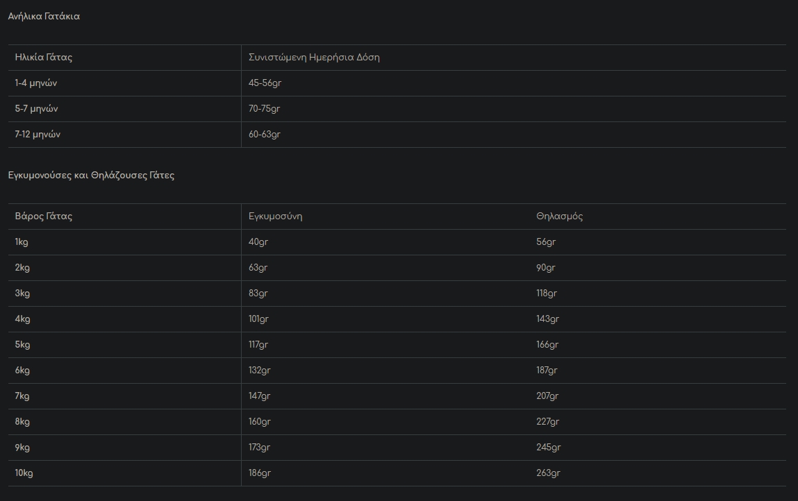 Παρασκευάζεται με γνώμονα τη φυσική διατροφή της γάτας, βασισμένη στα αγνά ποιοτικά υλικά προσφέροντας στον οργανισμό πλούσια θρεπτικά συστατικά καλύπτοντας παράλληλα τις διατροφικές της απαιτήσεις.