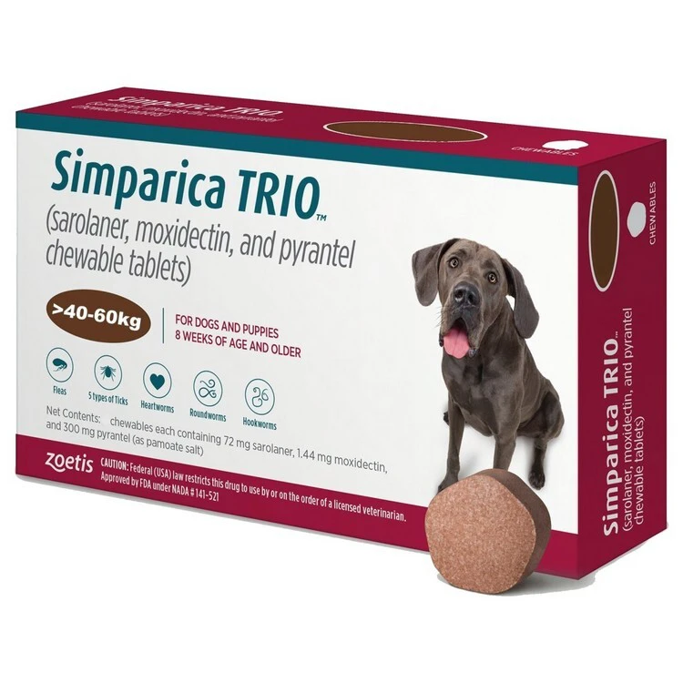 Μασώμενα αντιπαρασιτικά δισκία για προστασία από τσιμπούρια, ψύλλους, εντερικά νηματώδη και για πρόληψη της Dirofilaria Immitis (σκουλήκι καρδιάς) και της αγγειοστρογγύλωσης.