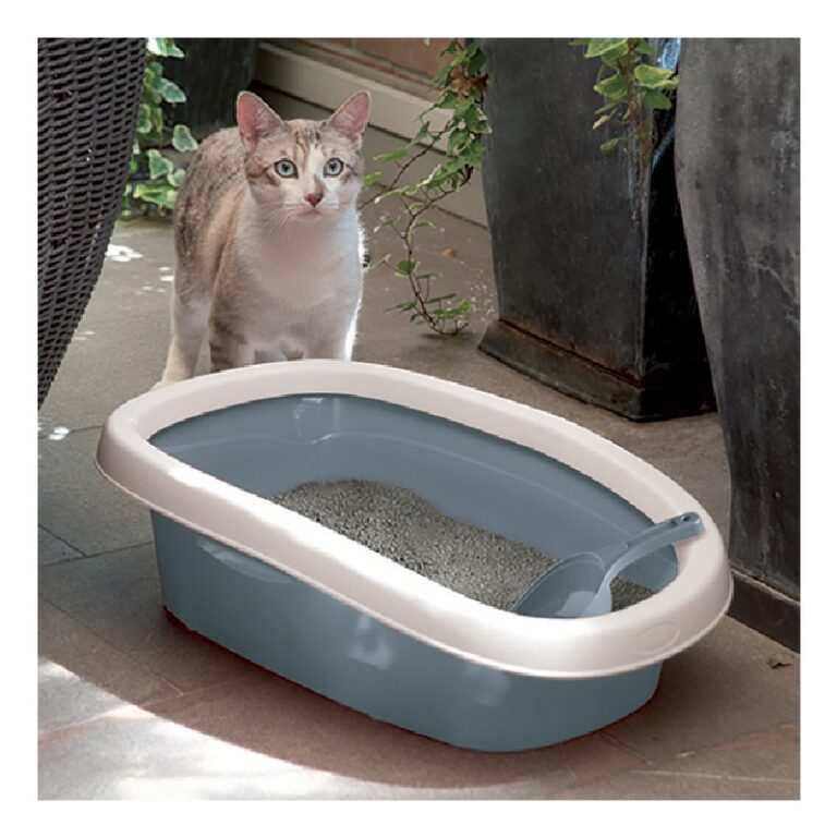 Τουαλέτα γάτας με αποσπώμενο στόμιο που εξασφαλίζει μεγαλύτερη καθαριότητα εφόσον είναι αποτελεσματικό στο να αποτρέπει το χώμα να βγαίνει έξω από την τουαλέτα.