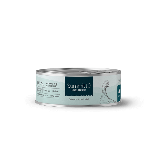 Το Summit10 Patè Delish Πάπια με Βατόμουρα και Αχλάδι είναι υγρή τροφή γάτας τύπου πατέ, με απαλή υφή και υψηλή αποδοχή, σχεδιασμένη για καθημερινή διατροφή ενήλικων γατών.