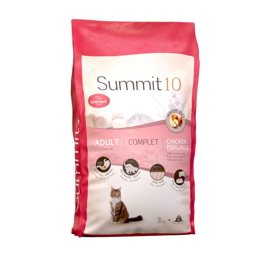 Summit10 Ξηρά Τροφή Γάτας για Έλεγχο Τριχόμπαλας με Κοτόπουλο, Ρύζι & Ψάρι 3kg