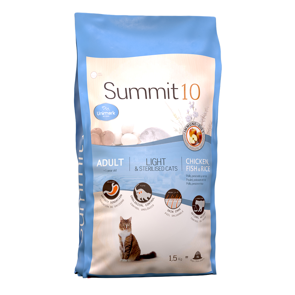 Άλευρο κοτόπουλου (28%), σιτάρι, ρύζι (10%), καλαμπόκι, ιχθυάλευρο, λίπος πουλερικών, μαγιά, υδρολυμένο συκώτι κοτόπουλου, ίνες κυτταρίνης, πολτός τεύτλων, πολτός κιχωρίου (FOS), λάδι σολομού, αποξηραμένο ολόκληρο αυγό, μήλο, αλάτι, χλωριούχο κάλιο, δεντρολίβανο, αγριμόνιο, Yucca schidigera.