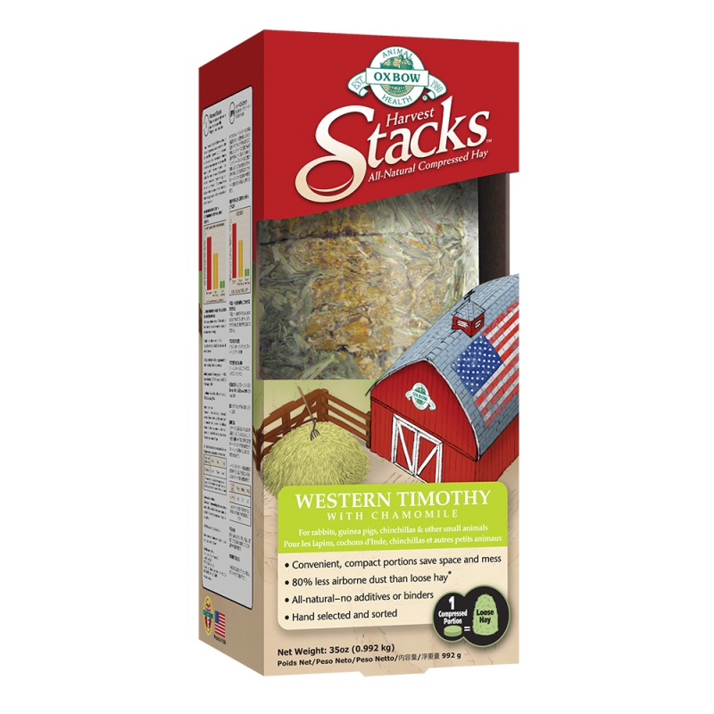Η καινοτομία στα χόρτα από την Oxbow! Με τη χρήση ειδικής τεχνολογίας συμπίεσης, μετατρέπεται το 100% φυσικό, Western Timothy χόρτο, σε συμπαγή μονομερίδα. Ιδιαίτερα βολικό για όλα τα τρωκτικά. Βολικές, συμπαγείς μερίδες Εξοικονόμηση χώρου 80% λιγότερη σκόνη σε σχέση με τα μη συμπιεσμένα χόρτα 100% φυσικό προϊόν – χωρίς πρόσθετα Επιλεγμένα χόρτα με το χέρι Εμπλουτισμένο γεύμα