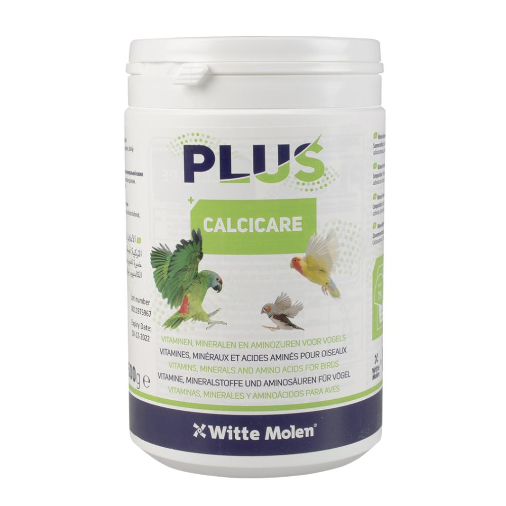 Το Calcicare είναι μια πρόσθετη τροφή για πουλιά που περιέχει διαφορετικά μέταλλα, βιταμίνες και αμινοξέα. Περιέχει απαραίτητα αμινοξέα όπως η μεθειονίνη και η λυσίνη, τα οποία δεν μπορεί να συσσωρεύσει το πουλί στο σώμα του. Η χαμηλή περιεκτικότητα σε σίδηρο (10 mg ανά kg τελικής τροφής) σημαίνει ότι το Calcicare είναι επίσης ιδανικό για πουλιά που τρώνε φρούτα και έντομα.Σύνθεση
