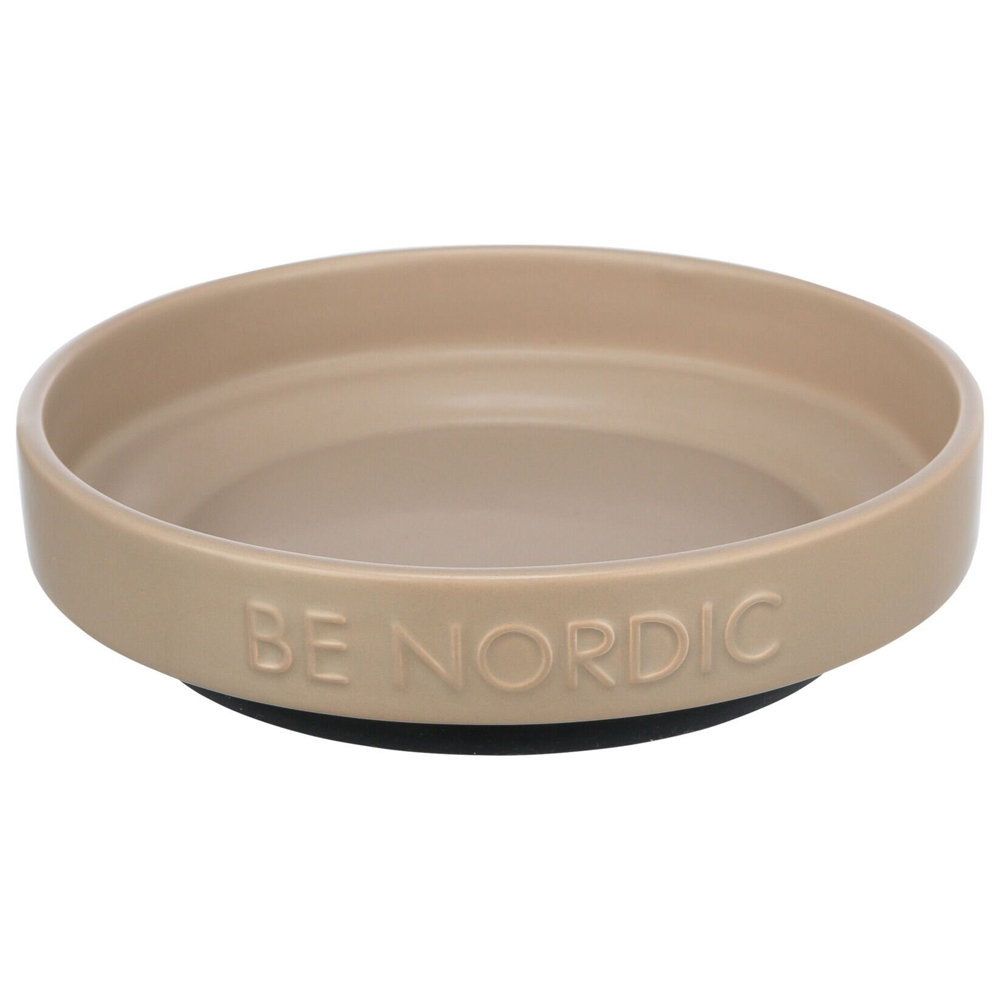 Trixie Be Nordic Ρηχό Πιάτο Κεραμικό με Λαστιχένιο Δαχτύλιο Μπεζ/Καφέ 300ml/16cm