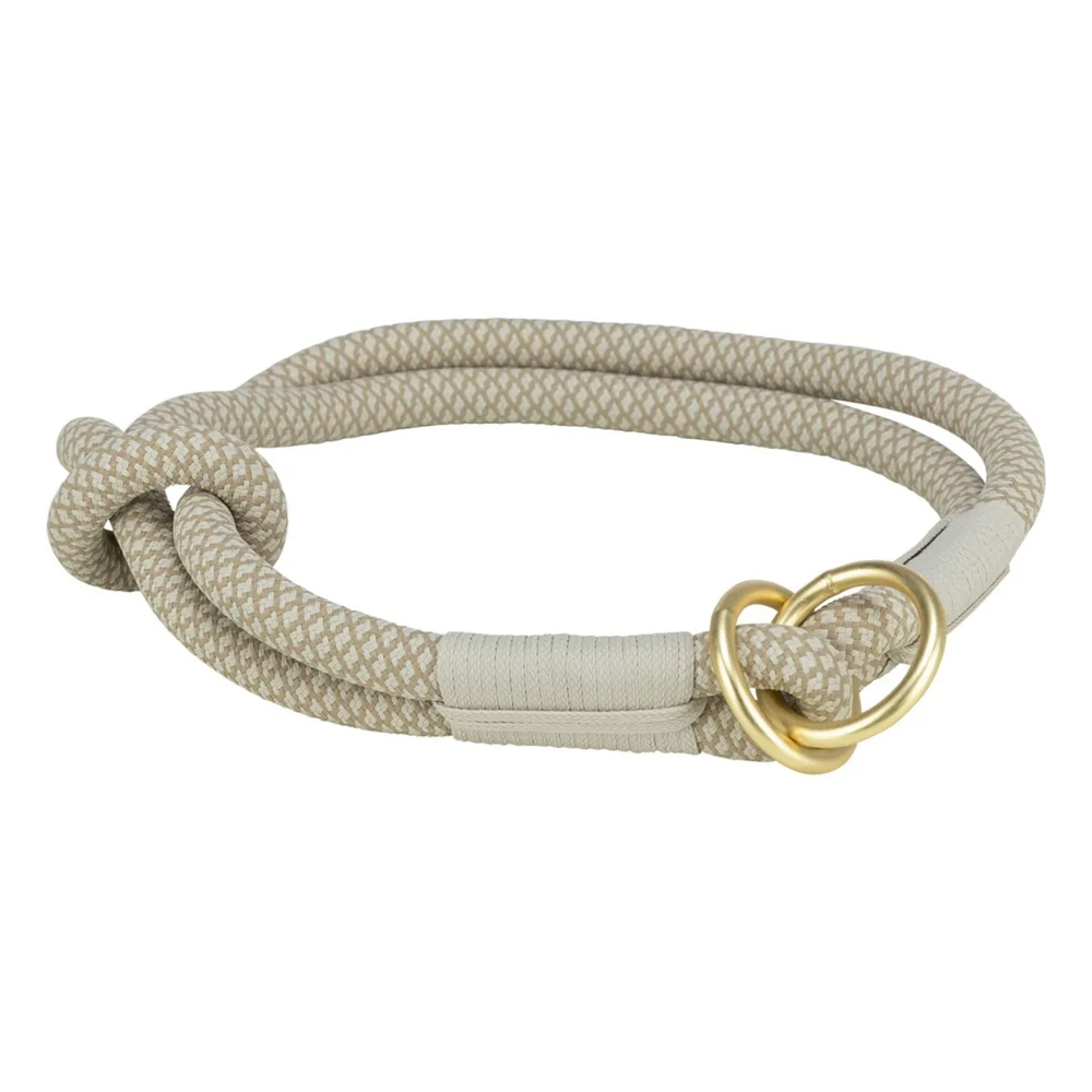 Ένα ιδανικό κολάρο για σκύλους που είναι λίγο υπερβολικά ενθουσιώδεις με το λουρί, αλλά για όσους προτιμούν να μην χρησιμοποιούν ολίσθησης αλυσίδα. Αυτό το κολάρο είναι κατασκευασμένο από στιβαρό αλλά άνετο στρογγυλό πλεγμένο σχοινί σε όμορφα παστέλ χρώματα. Λόγω της εύχρηστης κατασκευής, το κολάρο γίνεται ελαφρώς πιο σφιχτό όταν υπάρχει μεγάλη πίεση, αλλά ο κόμπος, τον οποίο μπορείτε να τοποθετήσετε μόνοι σας για το σωστό μέγεθος, δημιουργεί ένα μπλοκάρισμα που εμποδίζει το κολάρο να τραβηχτεί εντελώς σφιχτά. Εύκολο στο βάλσιμο και στο βγάλσιμο!