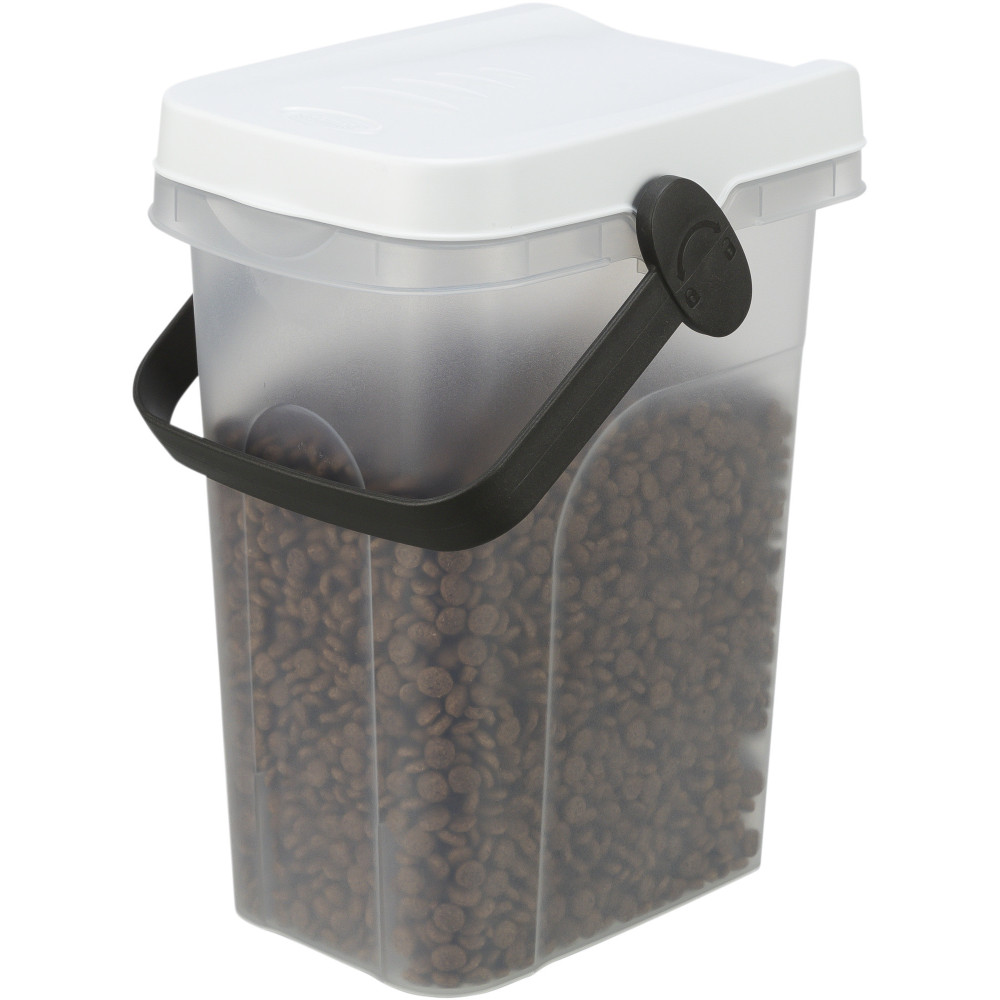 Αυτό το δοχείο μπορεί να αποθηκεύσει ξηρά τροφή (περίπου 3 kg). Το αεροστεγές καπάκι του (με λαστιχένιο σφράγισμα) βοηθά στη διατήρηση της γεύσης της τροφής και προστατεύει από την υγρασία. Συνιστάται η αποθήκευση σε εσωτερικό χώρο. Το λευκό καπάκι του βαρελιού είναι διαφανές, καθιστώντας εύκολο να δείτε το επίπεδο της κροκέτας.