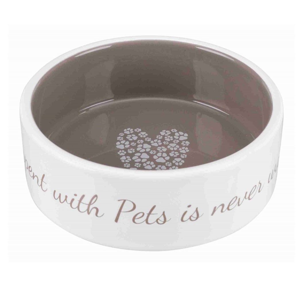Το μπολ είναι κατασκευασμένο από κεραμικό υψηλής ποιότητας και διαθέτει μπλε εσωτερικό και την επιγραφή: “Το μόνο που χρειάζεστε είναι αγάπη και ένα κατοικίδιο”.