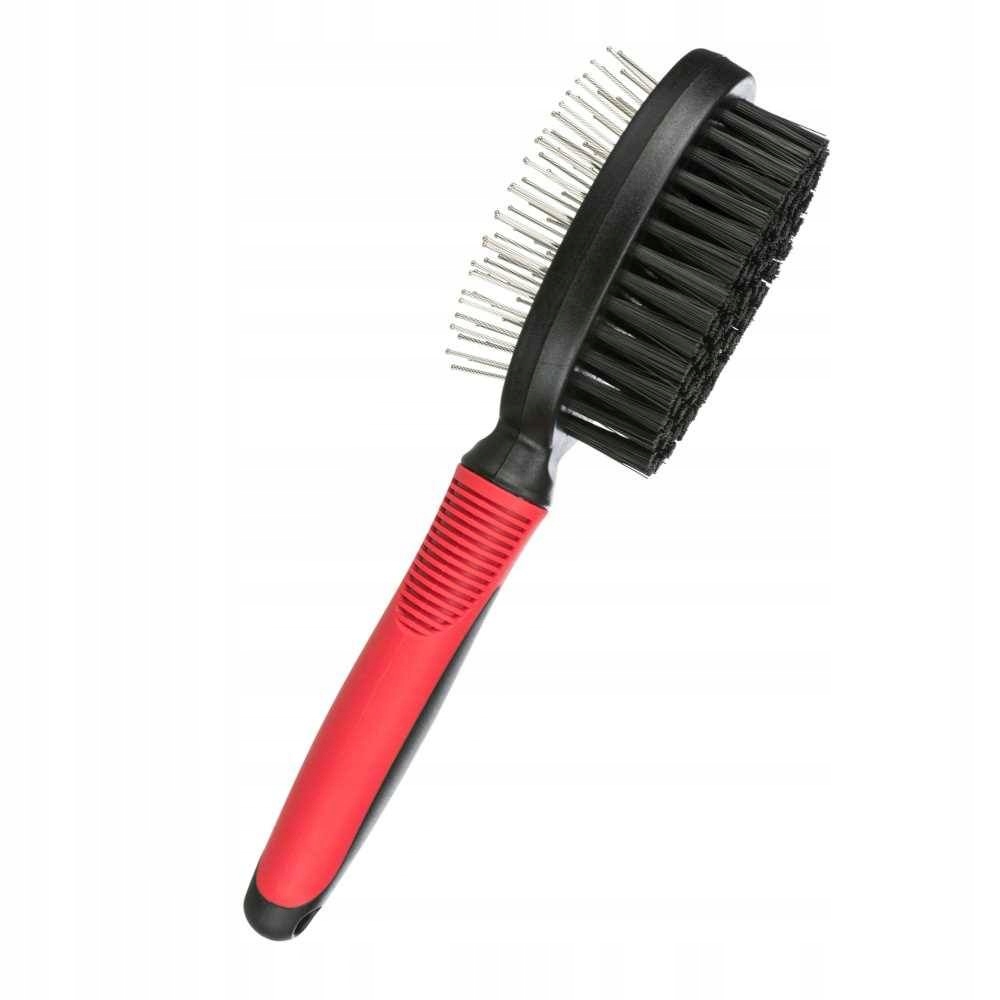Πλαστική λαβή με λαστιχένια λαβή. Νάιλον τρίχες στη μία πλευρά, μεταλλικές τρίχες με άκρες για χοντρό, μακρύ ή κοντό τρίχωμα στην άλλη. Κατάλληλο για γάτες.