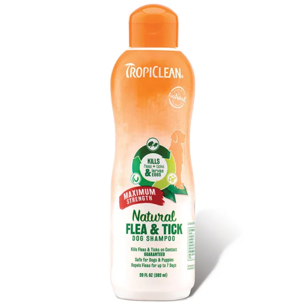 Το TropiClean Natural Flea & Tick Maximum Strength Shampoo σκοτώνει ψύλλους, τσιμπούρια και κουνούπια με την επαφή. Η φόρμουλα μέγιστης αντοχής μας απωθεί τους ψύλλους για έως και 7 ημέρες. Αυτό το φυσικό απαραίτητο μείγμα περιέχει μερικά από τα πιο ισχυρά συστατικά της φύσης για την καταπολέμηση των παρασίτων, μεγιστοποιημένα με λεμονόχορτο και σησαμέλαιο, για μακροχρόνια αποτελέσματα. Ισχυρό και αποτελεσματικό αλλά αρκετά ασφαλές για τα συνηθισμένα μπάνια κατοικίδιων σε σκύλους και κουτάβια 12 εβδομάδων και άνω.