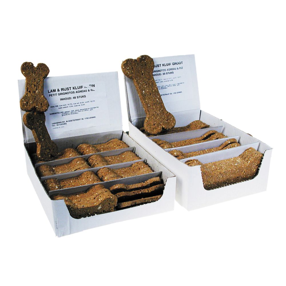 Ένα μεγάλο σε μέγεθος μπισκότο σε σχήμα κόκκαλου με αρνί και ρύζι, ιδανικό για καθημερινή επιβράβευση και απόλαυση του σκύλου σας.