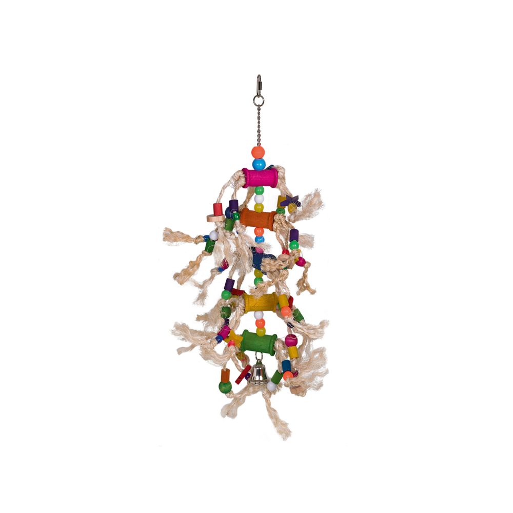 Πολύχρωμο παιχνίδι πτηνών με βαρέλια μήκους 47 cm, σχεδιασμένο να προάγει τη φυσική δραστηριότητα και την ψυχαγωγία μέσα στο κλουβί. Προσφέρει κινητική και αισθητηριακή διέγερση καθώς τα πτηνά αλληλεπιδρούν με τα στοιχεία του παιχνιδιού, ενθαρρύνοντας εξερεύνηση και ενεργητικότητα.