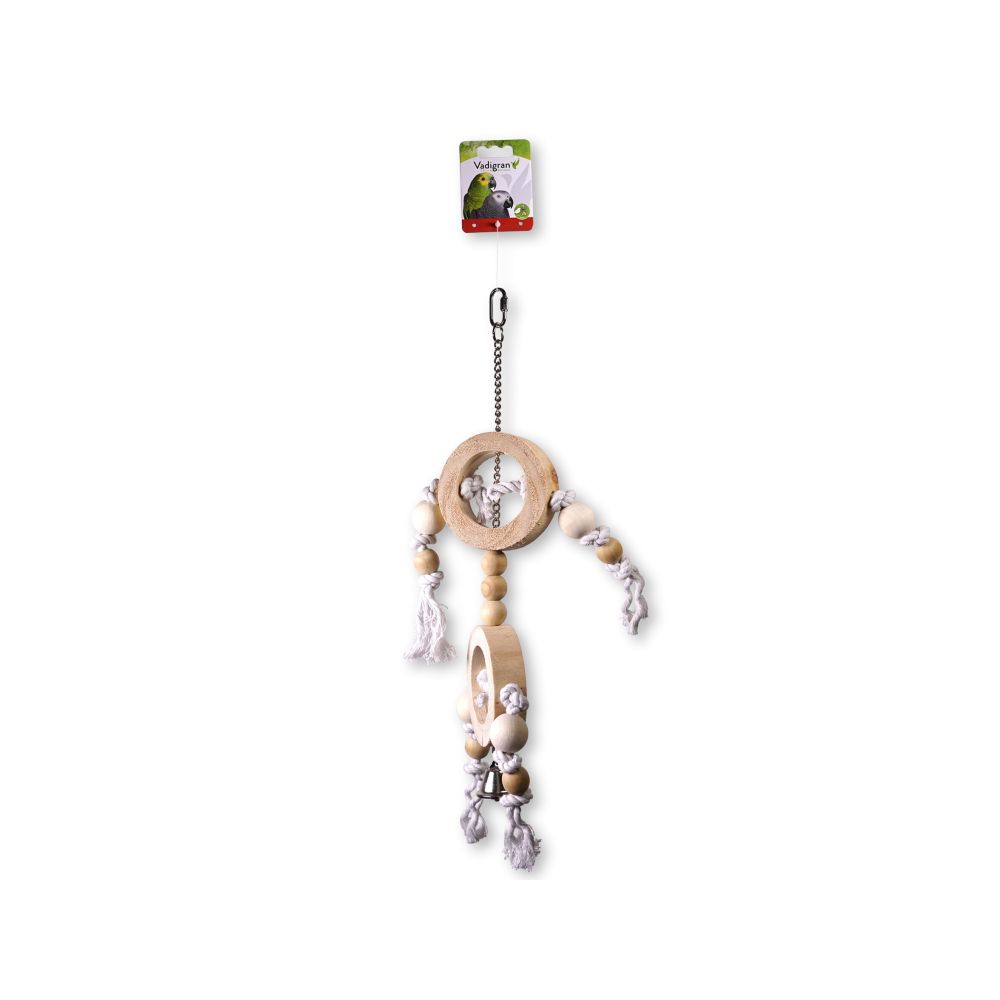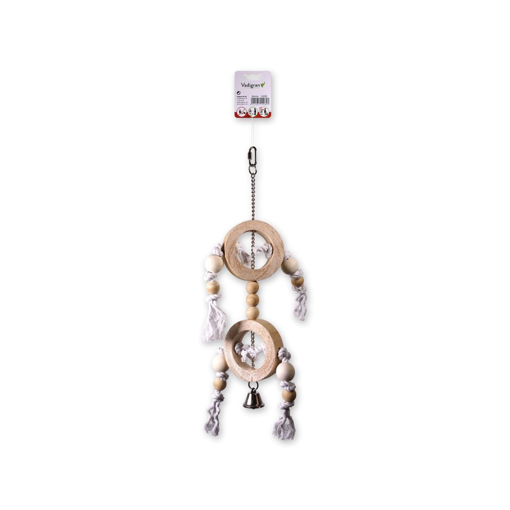 Παιχνίδι πτηνών τύπου dreamcatcher από βαμβάκι μήκους 53 cm, σχεδιασμένο να ενισχύει τη φυσική δραστηριότητα και την ψυχαγωγία εντός του κλουβιού. Τα στοιχεία από βαμβάκι προσφέρουν ευχάριστη υφή και κινητική διέγερση, ενθαρρύνοντας τα πτηνά να εξερευνούν και να αλληλεπιδρούν με το παιχνίδι.