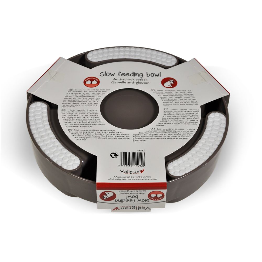 Το Vadigran Brain Brown Διδακτικό Μπολ Αργής Σίτησης 24cm είναι σχεδιασμένο με ειδικά εσωτερικά εμπόδια που επιβραδύνουν τη λήψη τροφής. Με αυτόν τον τρόπο βοηθά στη σωστή πέψη, μειώνει την πιθανότητα υπερφαγίας και προσφέρει νοητική διέγερση κατά τη διάρκεια του γεύματος. Η καφέ απόχρωση και η διάμετρος 24cm το καθιστούν ιδανικό για σκύλους μεσαίου μεγέθους.