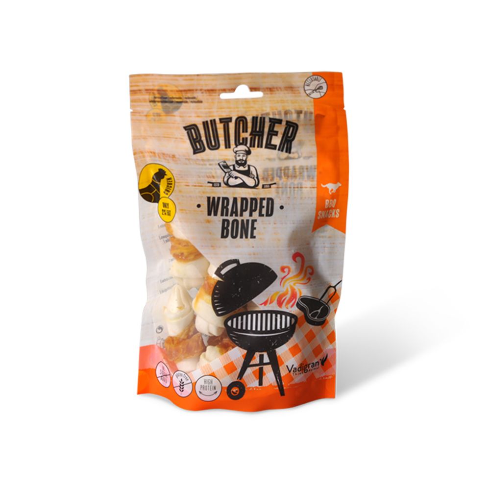 Το Vadigran Butcher BBQ Chicken Wrapped Bone είναι μια γευστική λιχουδιά για σκύλους που συνδυάζει τρυφερό κοτόπουλο τυλιγμένο γύρω από ένα φυσικό οστό, προσφέροντας μαλακή υφή και πλούσια γεύση. Ιδανική για επιβράβευση, εκπαίδευση ή απλή απόλαυση, βοηθά στη διατήρηση υγιούς συνήθειας μάσησης.