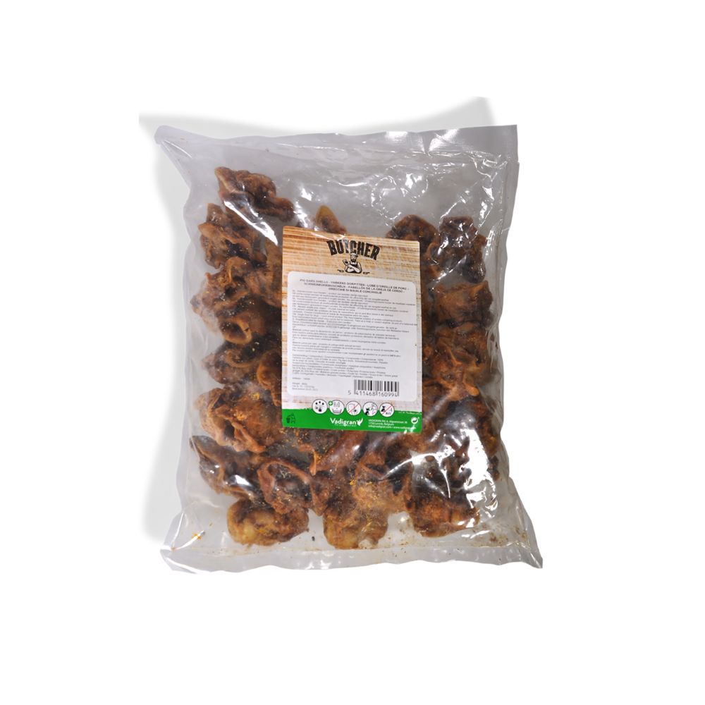 Η Vadigran Butcher Natural Δέρμα Χοιρινού (Pig Ears Shells) Λιχουδιά Σκύλου 150gr αποτελεί μια μονοπρωτεϊνική επιλογή για σκύλους που απολαμβάνουν το μάσημα. Κατασκευάζεται αποκλειστικά από δέρμα χοιρινού (pig ears shells), χωρίς πρόσθετα, χρωστικές, συντηρητικά ή ζάχαρη, και είναι χωρίς γλουτένη. Η τραγανή υφή προσφέρει διέγερση του φυσικού ενστίκτου του σκύλου, συμβάλλοντας παράλληλα στην επίδραση καθαρισμού των δοντιών.