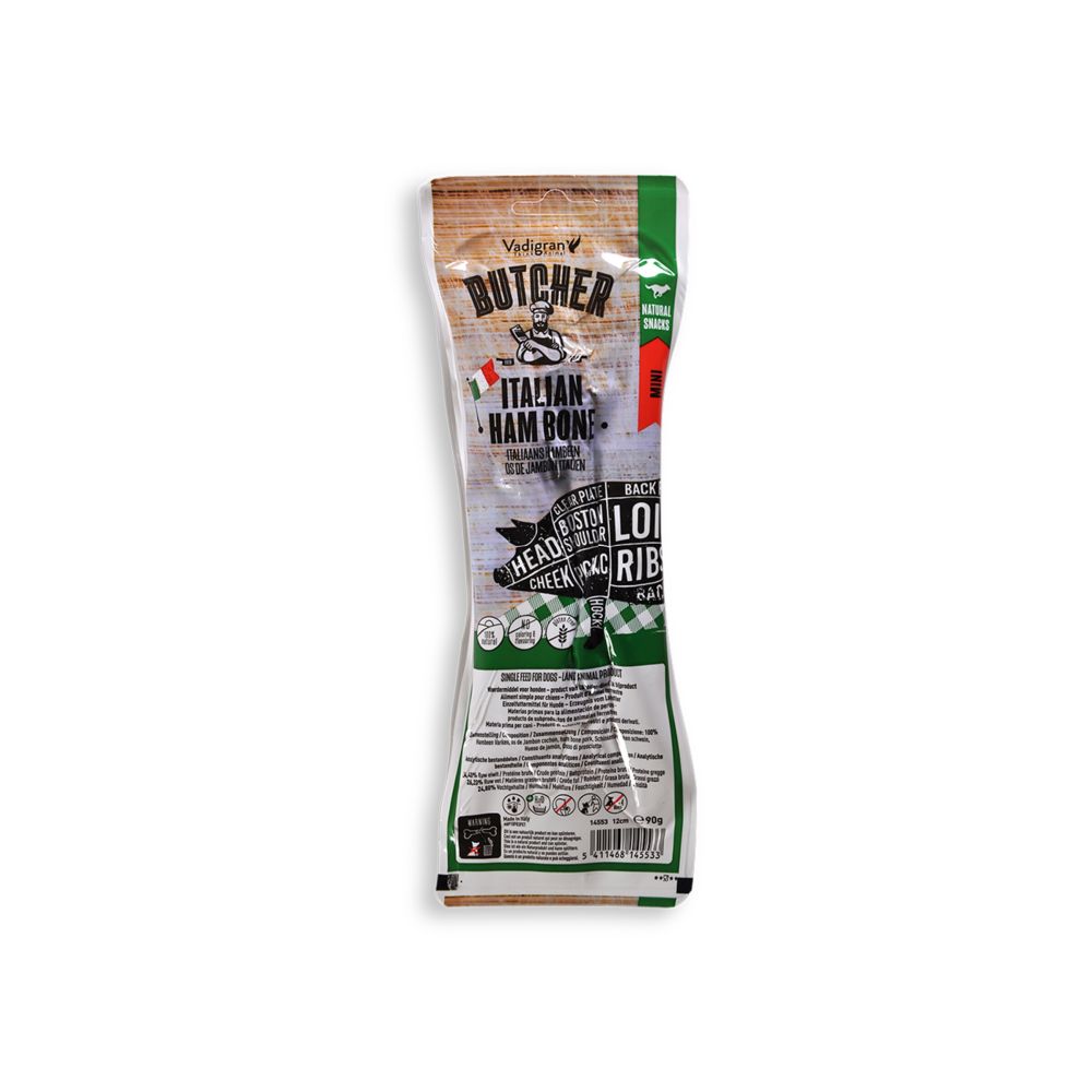 Η Vadigran Butcher Natural Ιταλικό Οστό Ζαμπόν Mini 12cm αποτελεί μια υψηλής ποιότητας επιλογή λιχουδιάς για τον σκύλο σας. Το 100% χοιρινό οστό ζαμπόν, χωρίς πρόσθετα ή συντηρητικά, ενθαρρύνει το φυσικό ένστικτο του σκύλου για μάσημα, συμβάλλει στην υγιεινή της στοματικής κοιλότητας και προσφέρει ευχάριστη εμπειρία snack. Η μικρή διάσταση των 12 cm το καθιστά κατάλληλο για σκύλους μικρού έως μεσαίου μεγέθους.