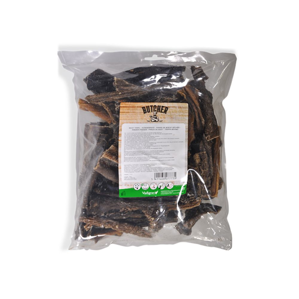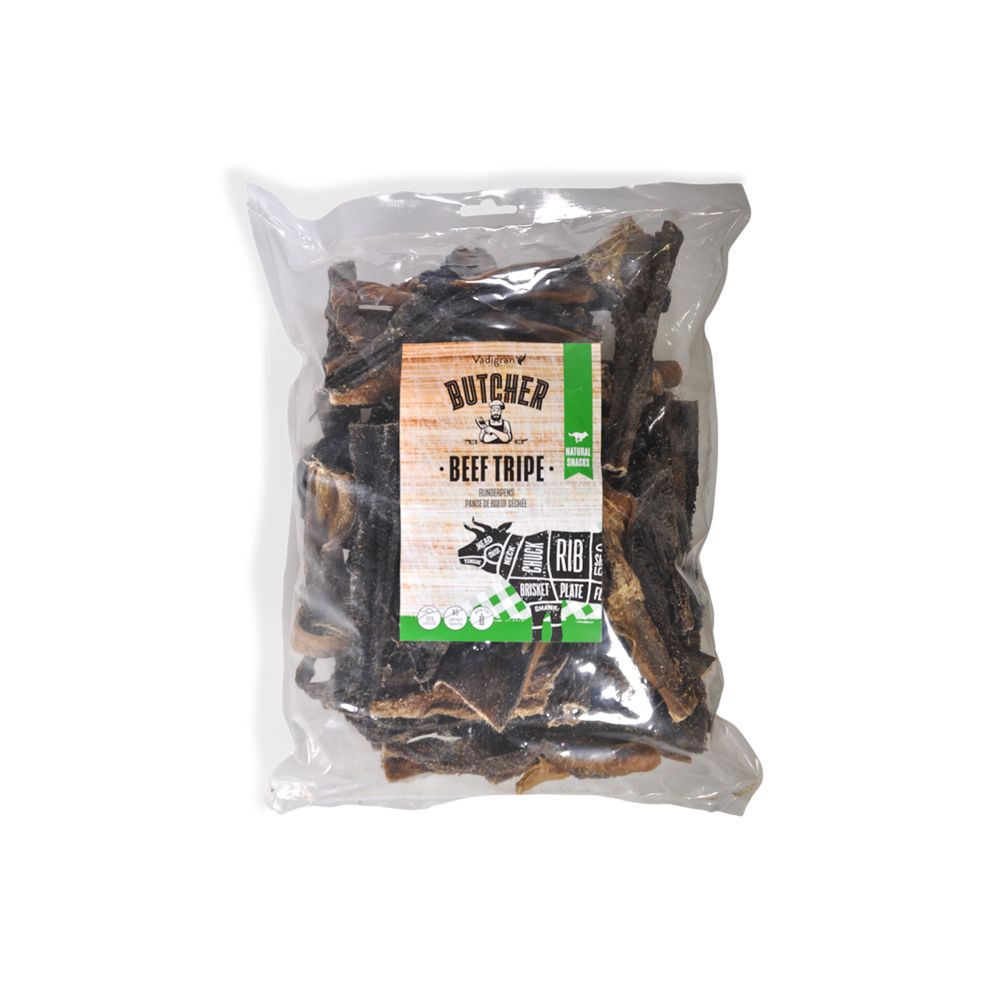 Η Vadigran Butcher Natural Πατσάς Βοδινού Λιχουδιά Σκύλου 750 gr αποτελεί μια μονοπρωτεϊνική και υψηλής ποιότητας επιλογή για τον σκύλο σας. Κατασκευάζεται εξ ολοκλήρου από πατσά βοδινού χωρίς πρόσθετα, χρωστικές, συντηρητικά ή ζάχαρη, και δεν περιέχει γλουτένη. Με πρωτεΐνη 65,70% και υγρασία 7,10% ενισχύει την ενεργητικότητα και προσφέρει ισχυρή διατροφική αξία.