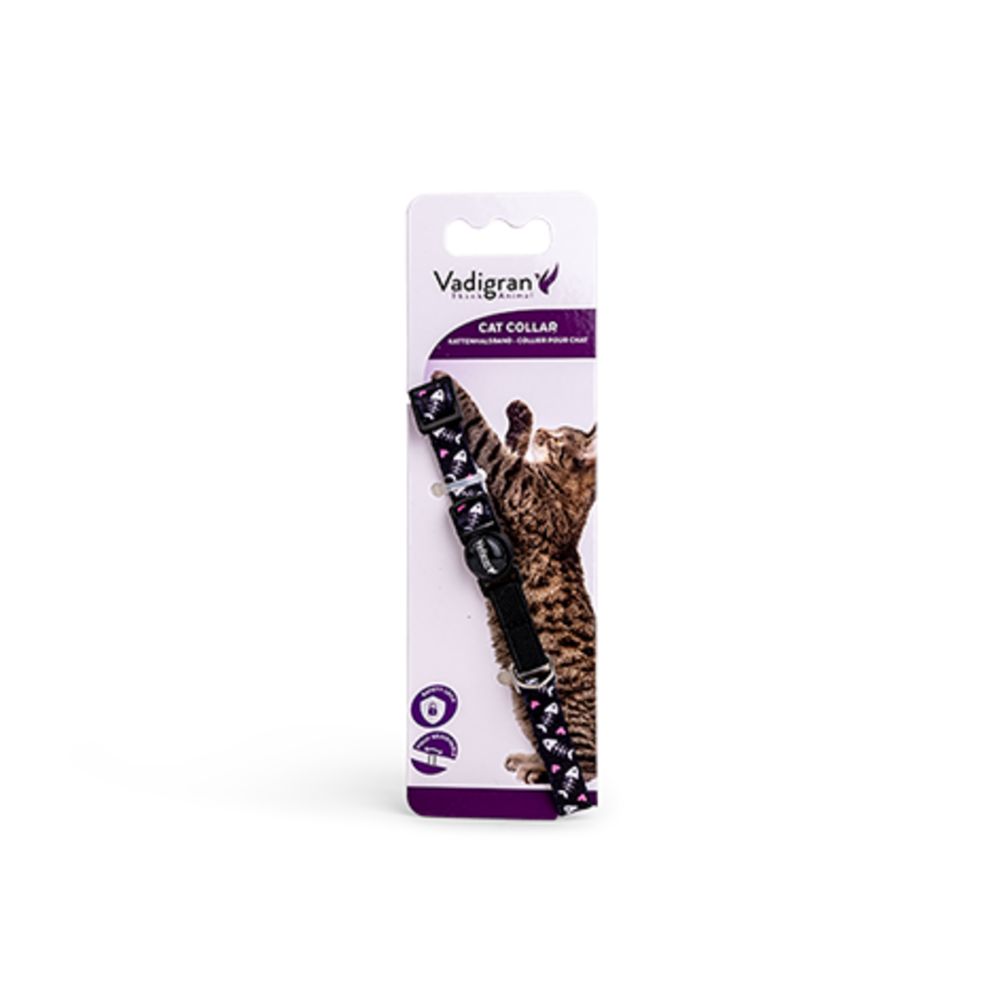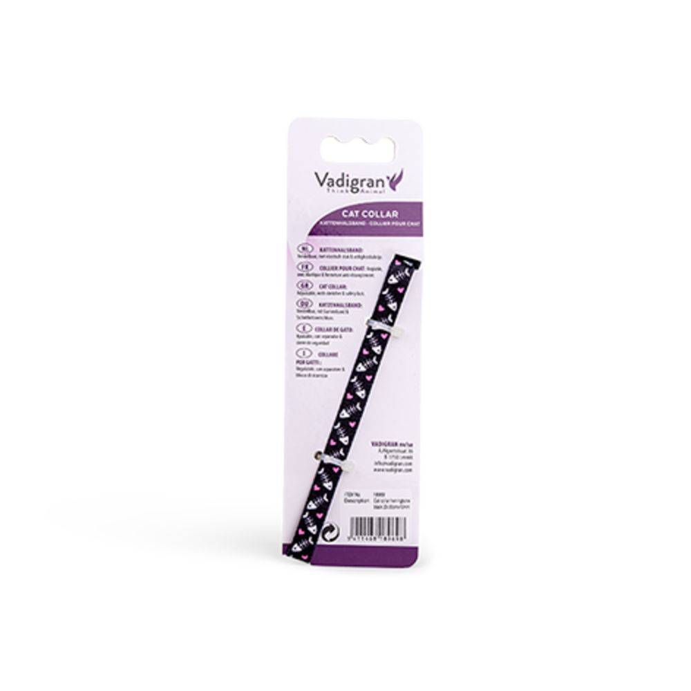 Το Vadigran Cat Collar Herringbone Black Κολάρο Γάτας 20-30cm×10mm είναι ρυθμιζόμενο nylon κολάρο σε μαύρο με σχέδιο ψαροκόκαλο (herringbone), κατάλληλο για γάτες μικρού έως μεσαίου μεγέθους.