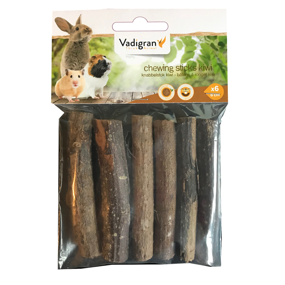 Τα Vadigran Chewing Sticks Kiwi 8 cm 6 τμχ είναι μικρά κλαδάκια από ξύλο ακτινιδιάς, ιδανικά για χάμστερ, ποντίκια, τσιντσιλά και άλλα τρωκτικά μικρού μεγέθους: