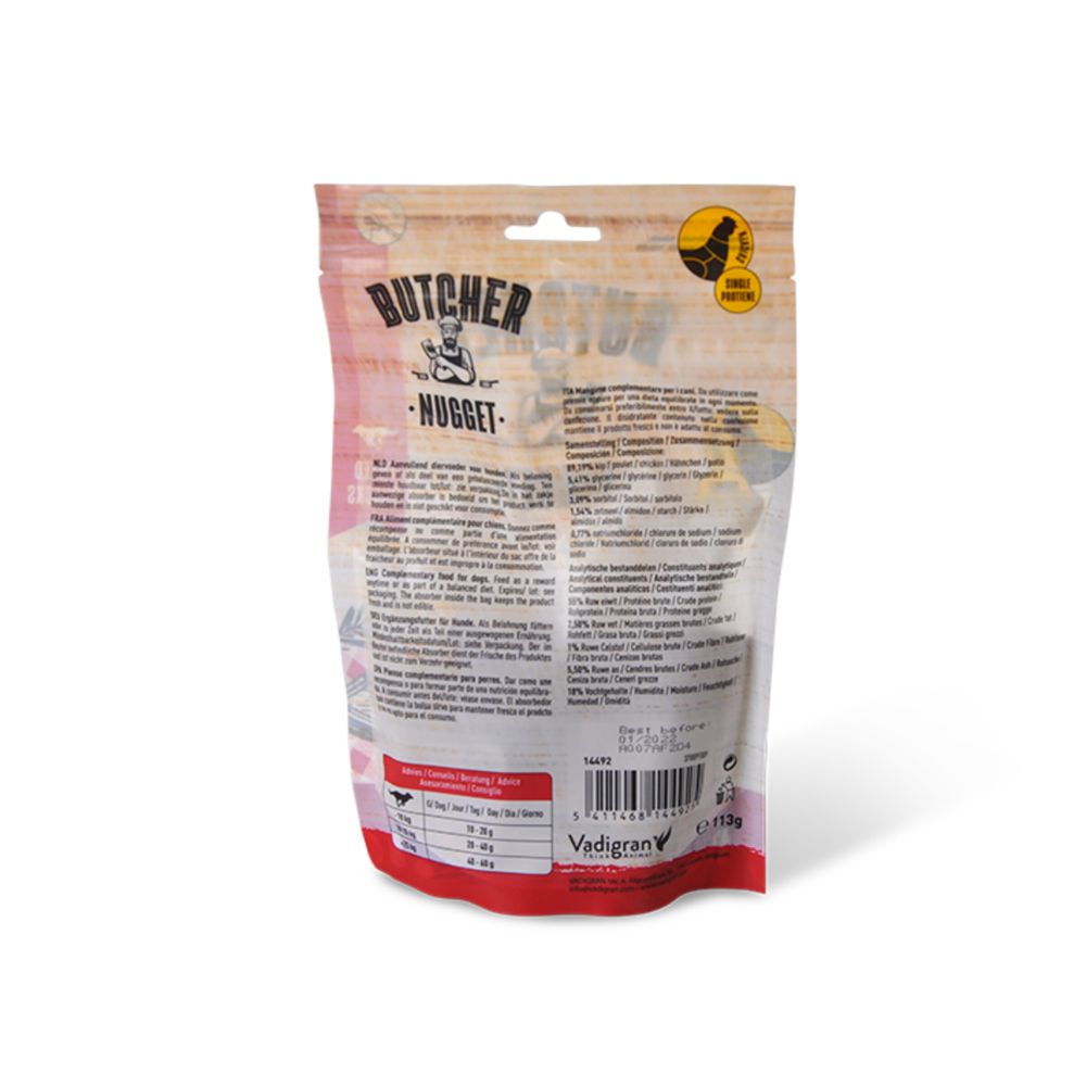 Λιχουδιά σκύλου με κοτόπουλο σε μορφή nuggets — νόστιμη, μαλακή και κατάλληλη για επιβράβευση 113g.