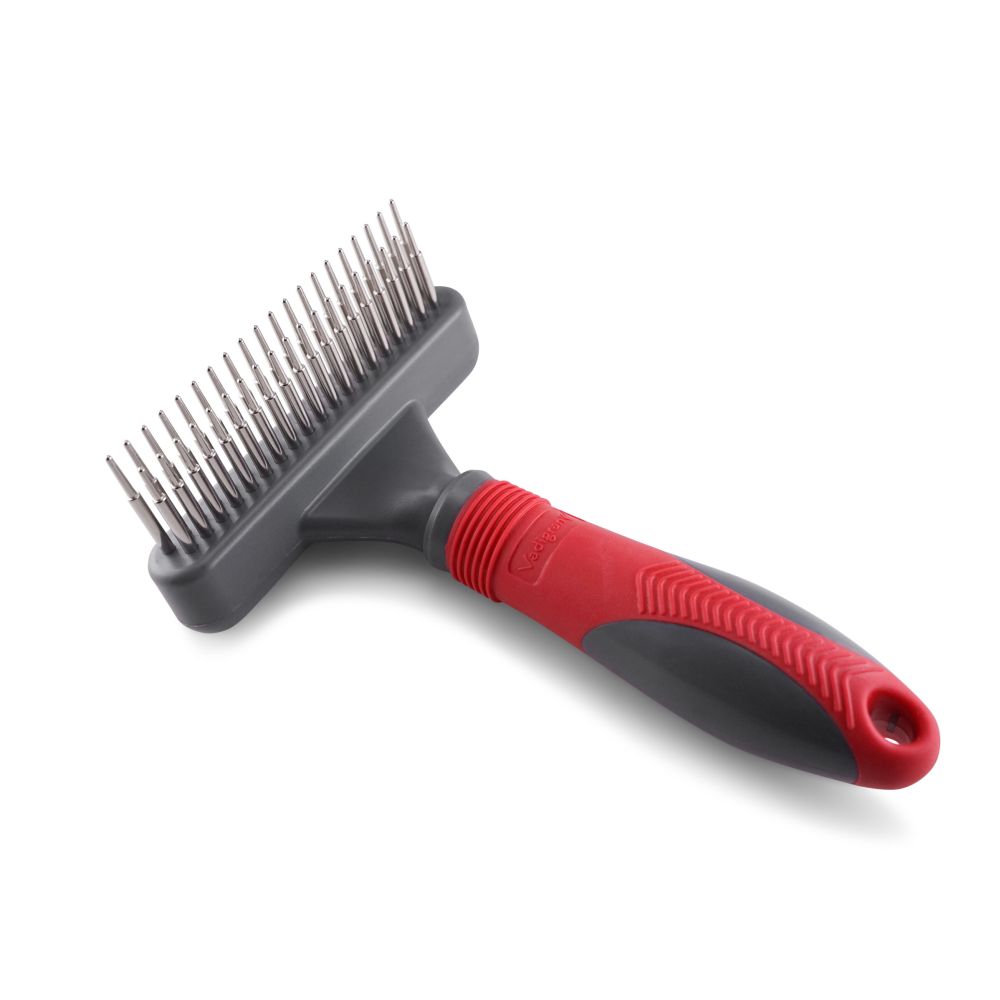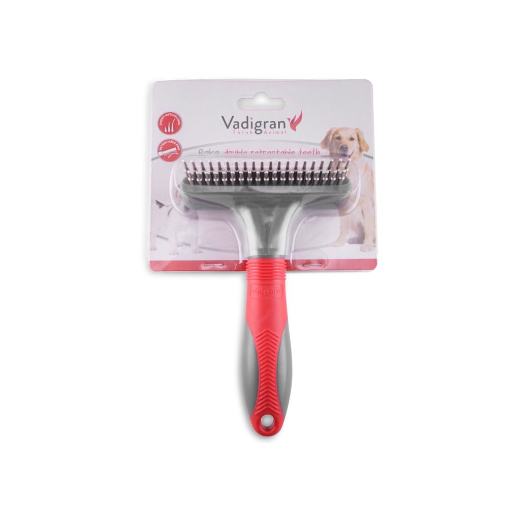 Η Vadigran Χτένα Διπλής Όψης με Αναδιπλούμενες Ακίδες 17.5cm είναι σχεδιασμένη για σκύλους με μακρύ, σγουρό ή εύκολα μπερδεμένο τρίχωμα. Οι ακίδες εισχωρούν στο τρίχωμα χωρίς να τραβούν το δέρμα, απομακρύνοντας νεκρή τρίχα και σκόνη, και προσαρμόζονται στο σχήμα του σώματος του κατοικιδίου. Ο μηχανισμός των αναδιπλούμενων ακίδων επιτρέπει έως και ενιαίο καθαρισμό της χτένας χωρίς να χρειάζεται αποσυναρμολόγηση.